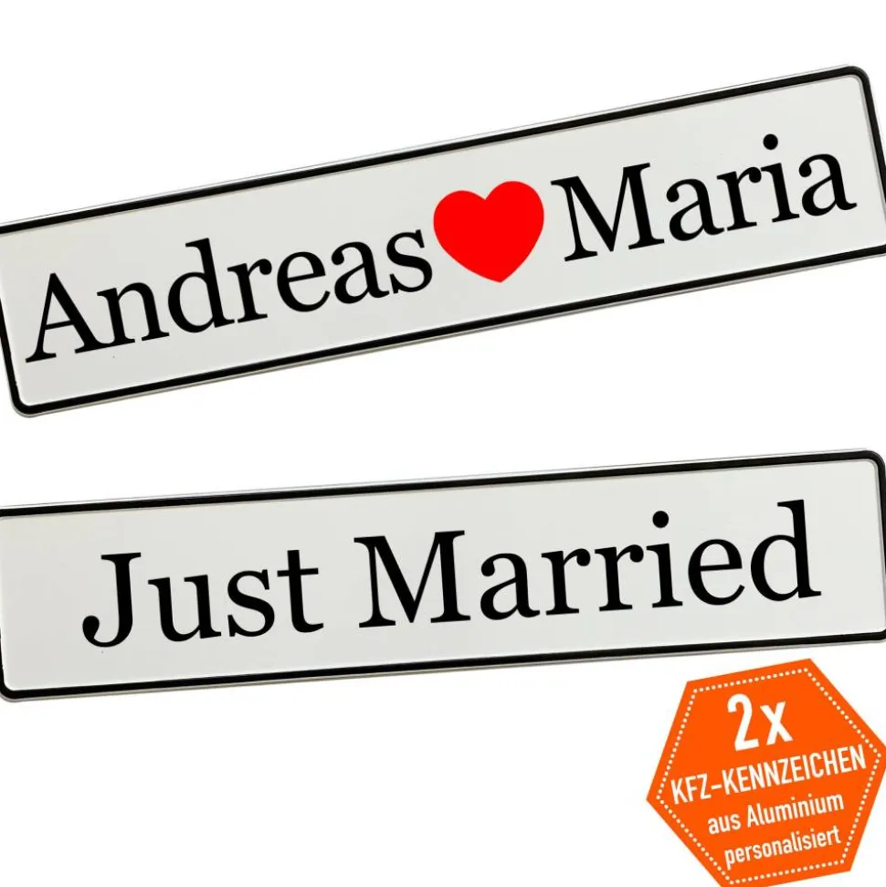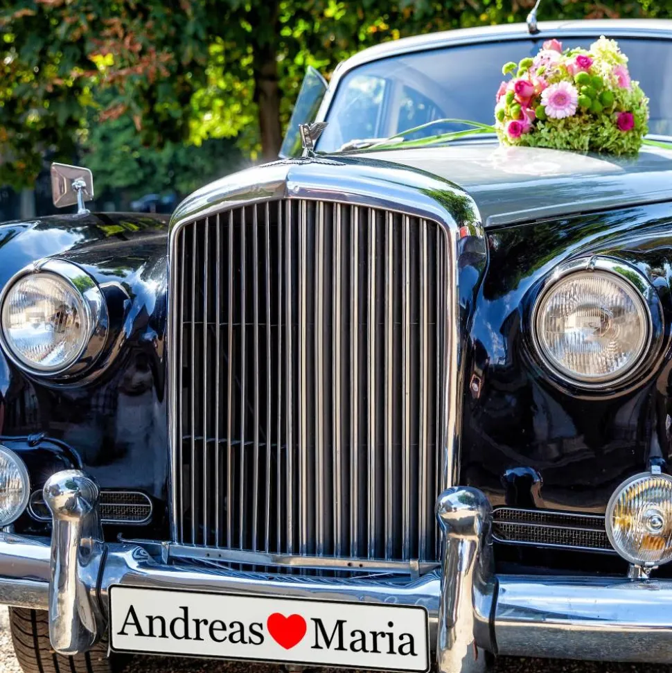 Du gibst einfach die gewünschten Namen an und wählst die passende Schriftart – wir fertigen dein persönliches Hochzeitskennzeichen mit viel Liebe zum Detail. Schon in kurzer Zeit hältst du deine individuelle Autodeko in den Händen.