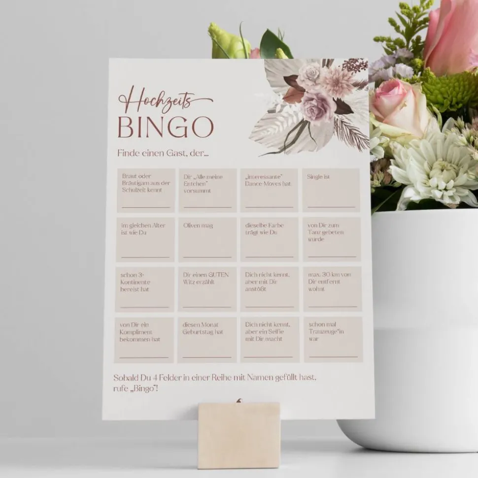 ⭐ GUTE STIMMUNG: Eure Gäste kennen sich nicht alle untereinander? Dann ist das Hochzeitsbingo Spiel super, damit sich die Stimmung auflockert und die Gäste sich kennen lernen.