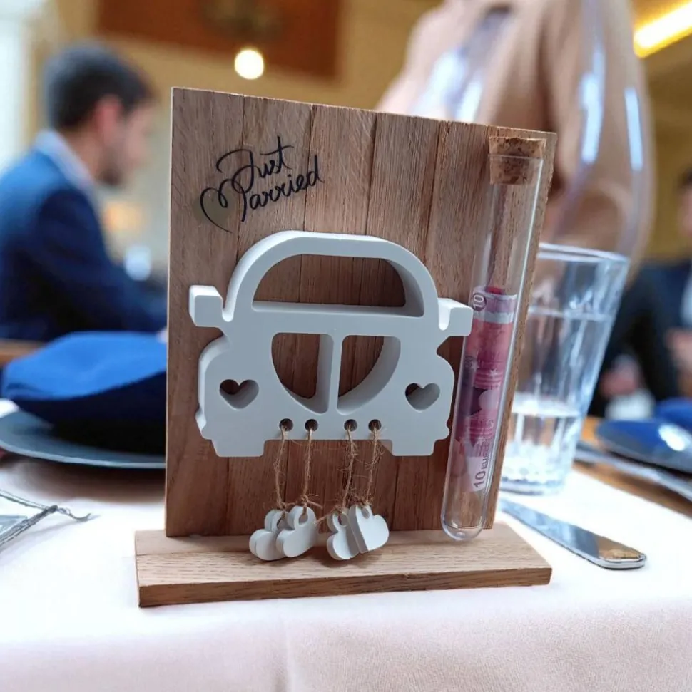 Das Hochzeitsgeschenk „Auto aus Keramik“ ist eine handgefertigte Dekoration, die perfekt für den besonderen Anlass geeignet ist. Das Geldgeschenk bietet eine einzigartige Möglichkeit, den frisch verheirateten Paaren Ihre Glückwünsche zu überreichen. Hergestellt aus hochwertiger Keramik und Eichenholz, ist dieses Produkt nicht nur eine beeindruckende Hochzeitsdekoration, sondern auch eine dauerhafte Erinnerung an den großen Tag. Ideal für Paare, die eine individuelle Note in ihrer Einrichtung suchen.