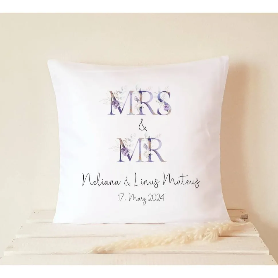 Dieses Kissen personalisiert mit Namen des Brautpaares ist ein tolles Geschenk zur Hochzeit.