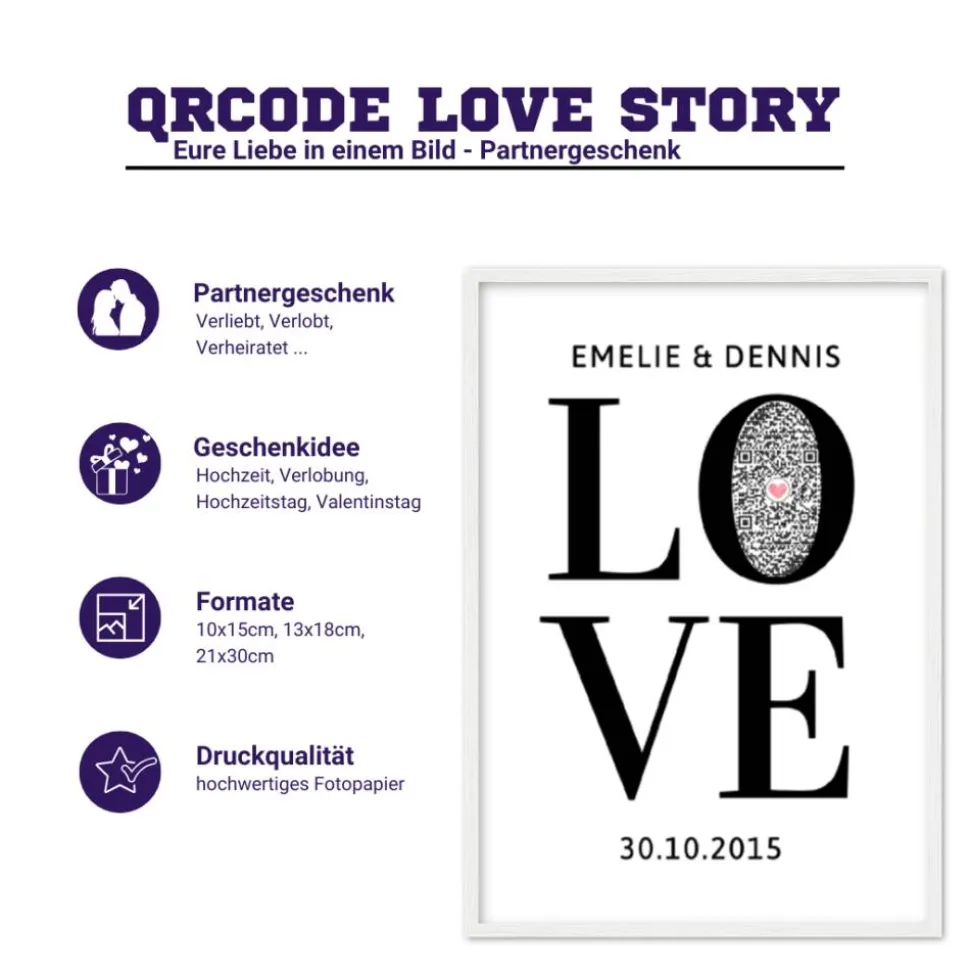 ❤️️ Ihr sucht noch das perfekte Geschenk zur Hochzeit, oder seid auf der Suche nach einem ganz besonderen Geschenk zum Jahrestag für euren Partner? Auf diesem persönlichen QrCode Bild auf Leinwand (20x30cm), könnt ihr jederzeit abrufen wie lange ihr schon Verliebt, Verlobt, Verheiratet seid.