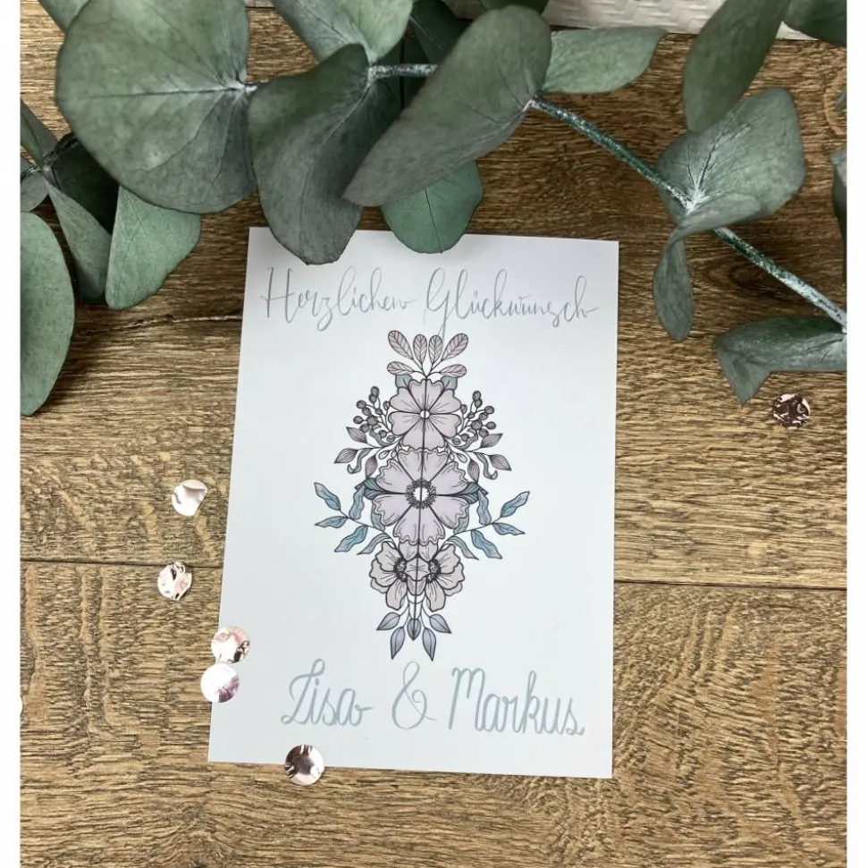– Karte mit Blumen personalisiert.