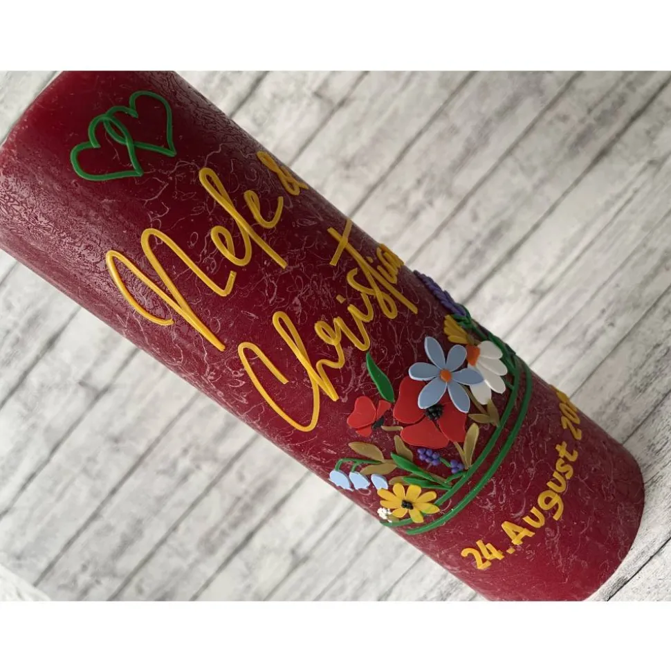 Liebevoll von Hand gestaltet, verziert mit Namen und Hochzeitsdatum.
