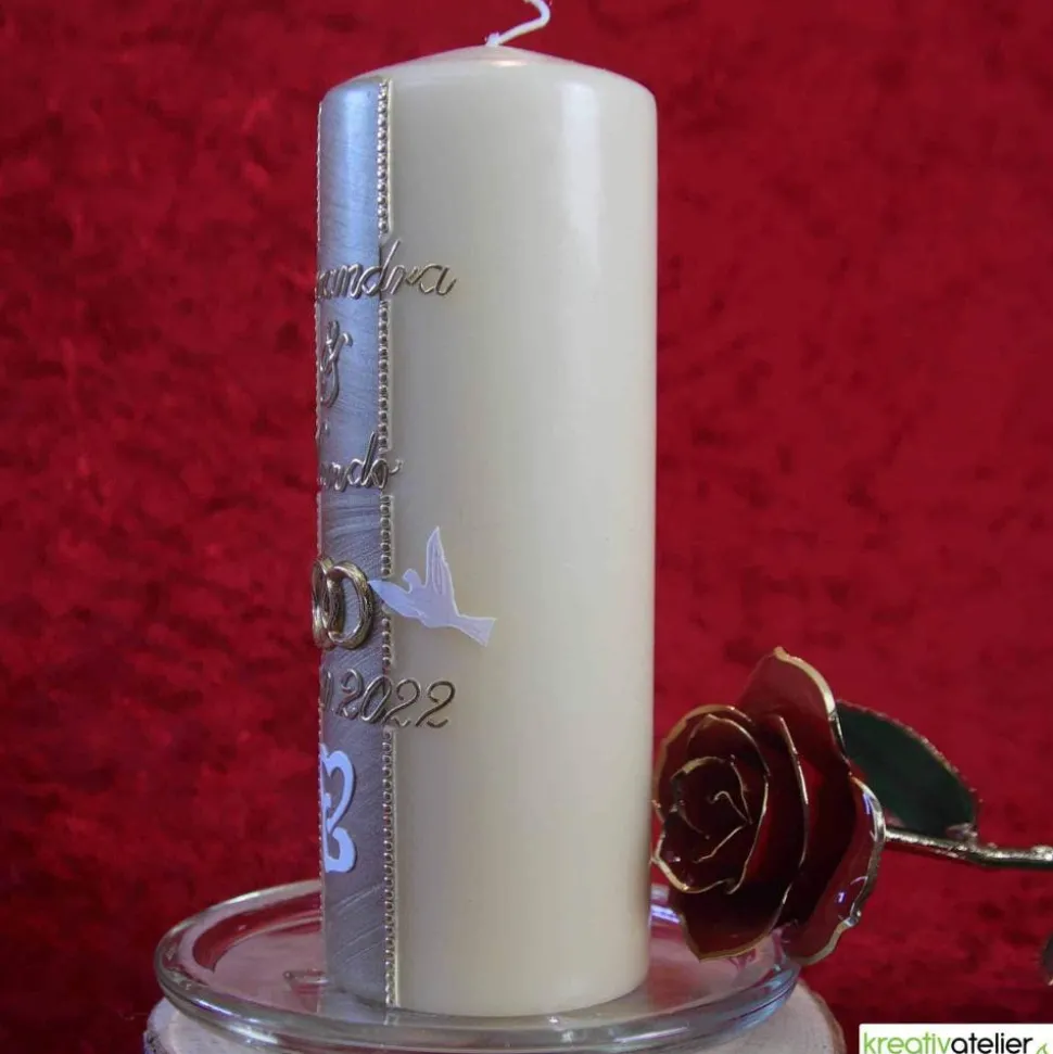 Nicht die richtige Kerze zum Hochzeitstag gefunden? Hier finden Sie weitere von mir gestaltete Kerzen zum Hochzeitstag: