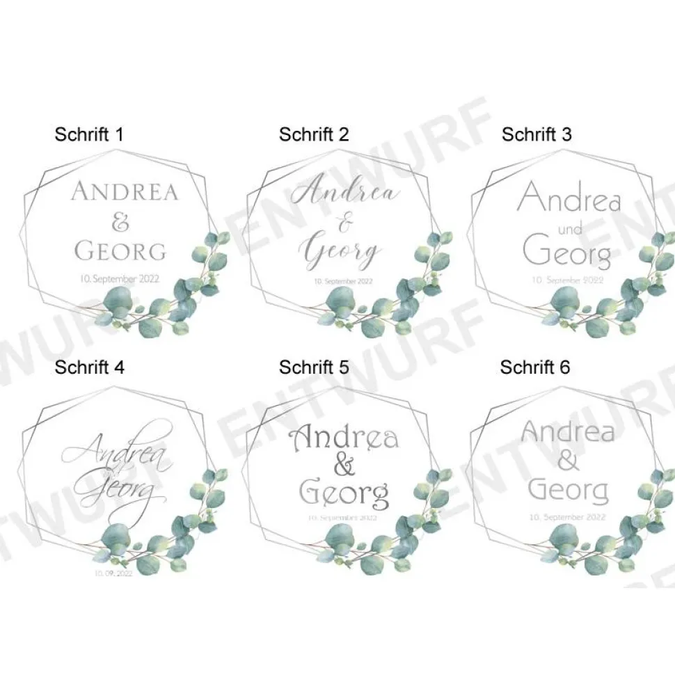 Zu Personalisieren sind Namen, Schrift, Zitat und Datum. Bitte bei der Bestellung angeben.