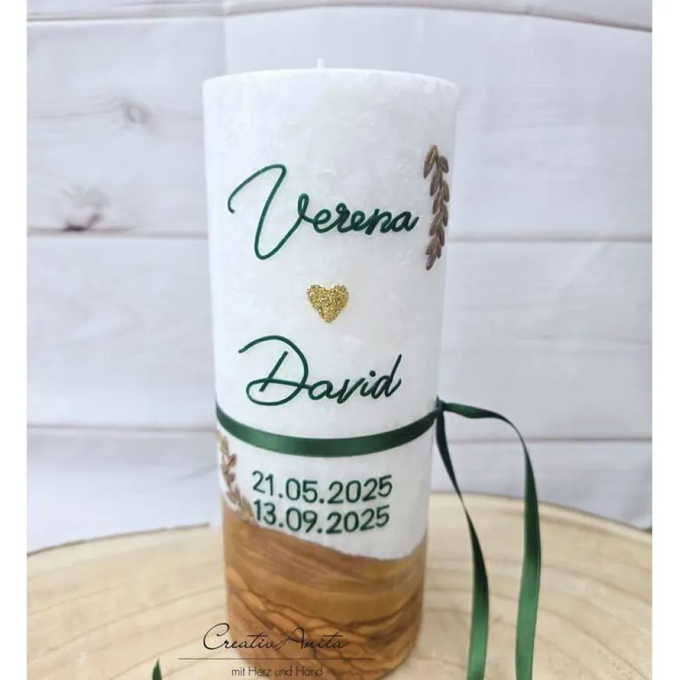 Liebevoll gestaltete Kerze personalisiert mit Ihren Namen und Datum (Ein Datum im Preis inbegriffen).