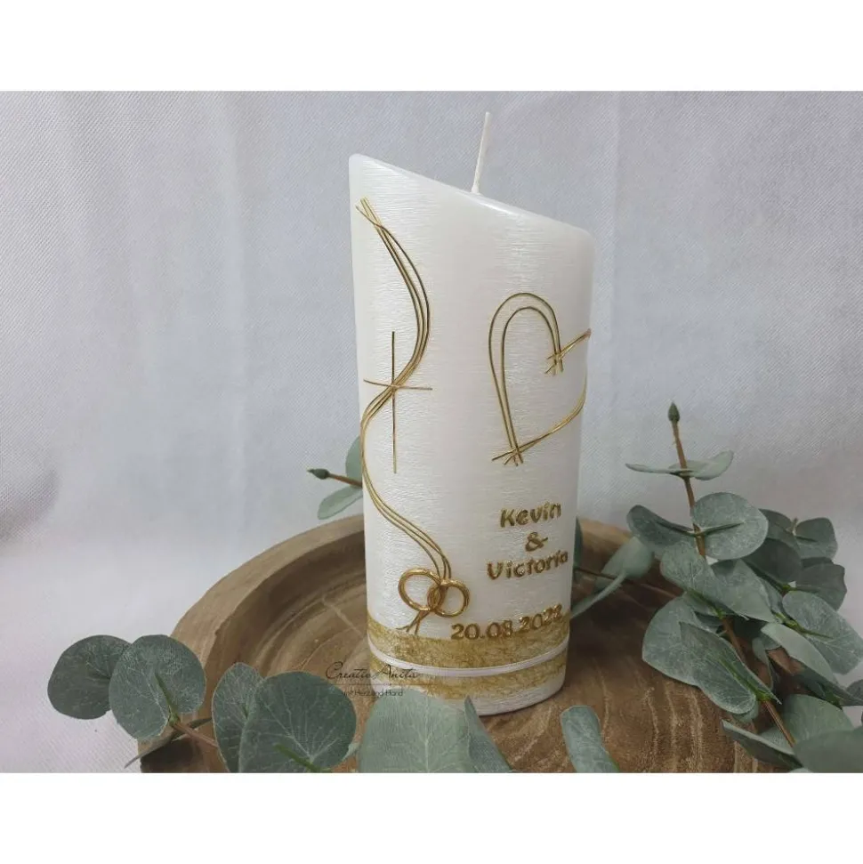 Gerne personalisieren wir die Kerze auch mit zwei Namen und Hochzeitsdatum.