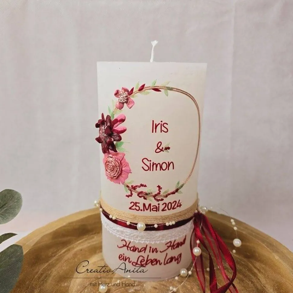 Deswegen ist jede einzelne Kerze ein wunderschönes Unikat und kleinere Abweichungen vom Foto sind dadurch natürlich möglich.