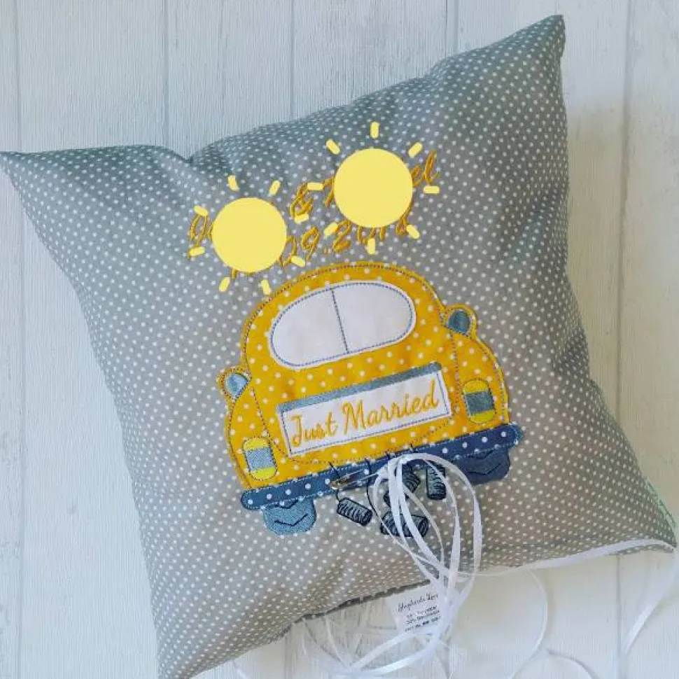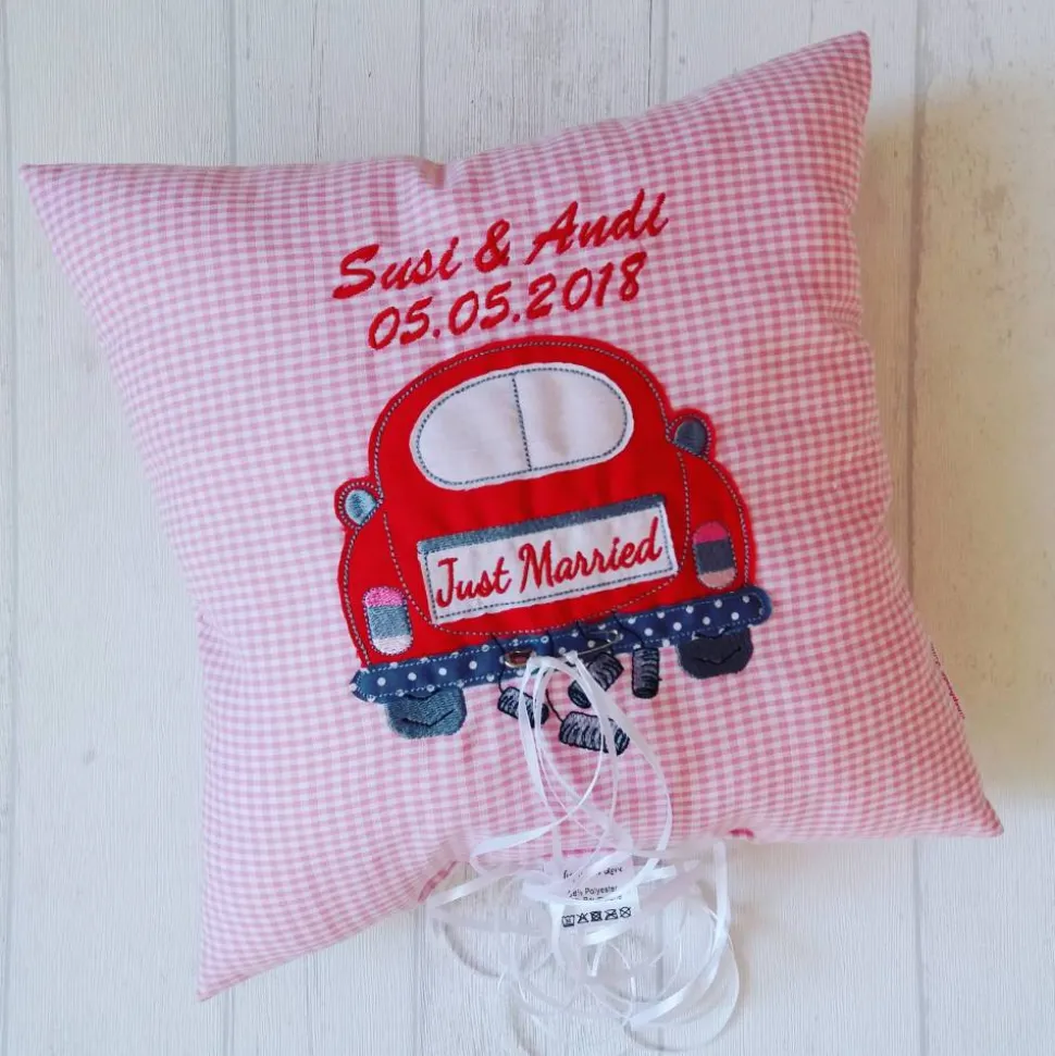 Ich biete das Kissen in rosa, rot, blau, beige, grau und grün an, auch die Farbe des Autos kann individuell ausgewählt werden. Bitte teile mir die Namen der Brautleute und das Datum mit.