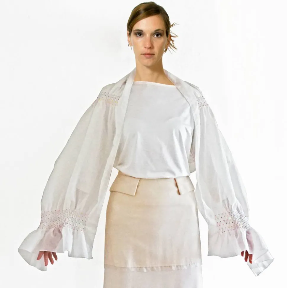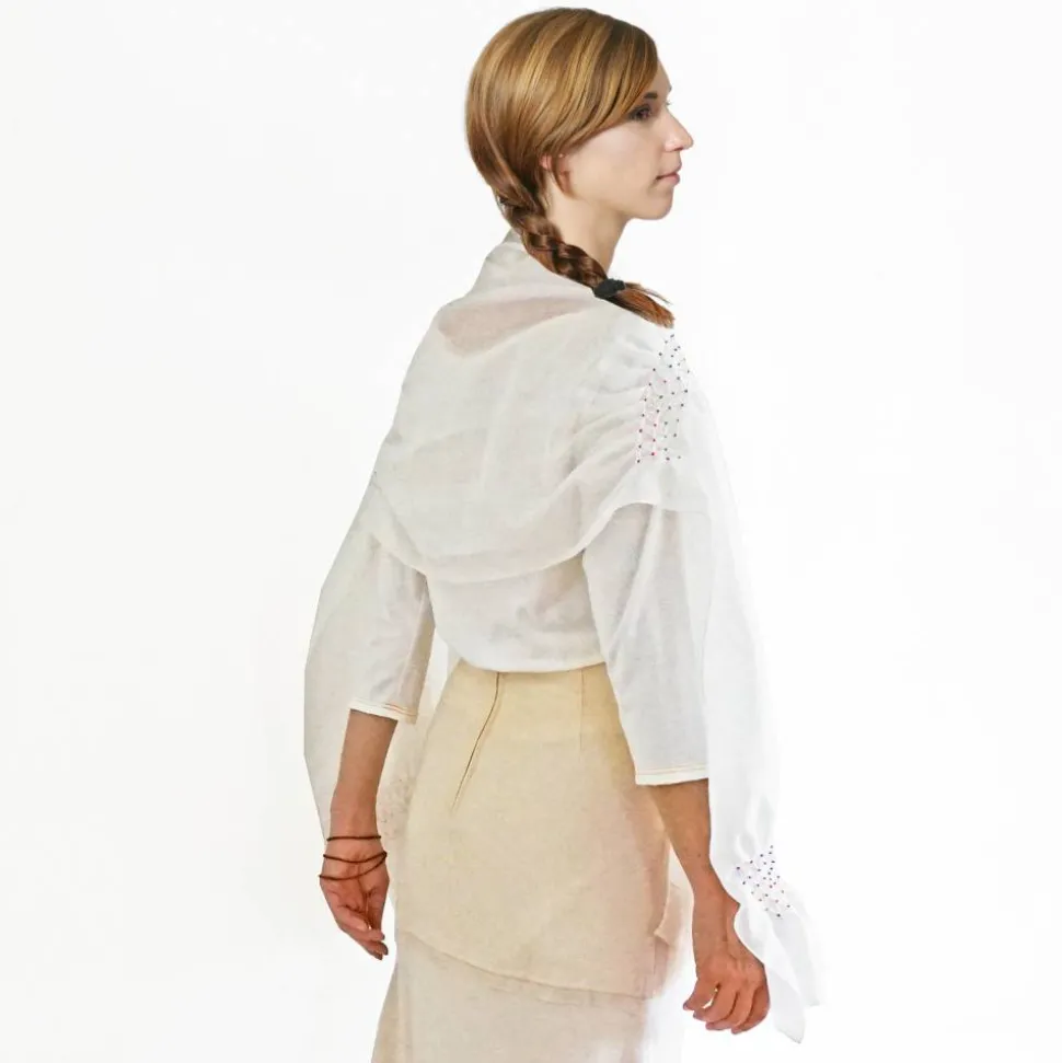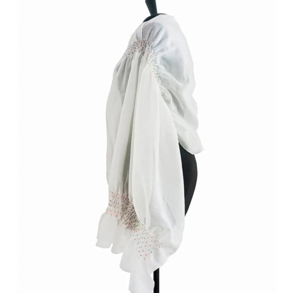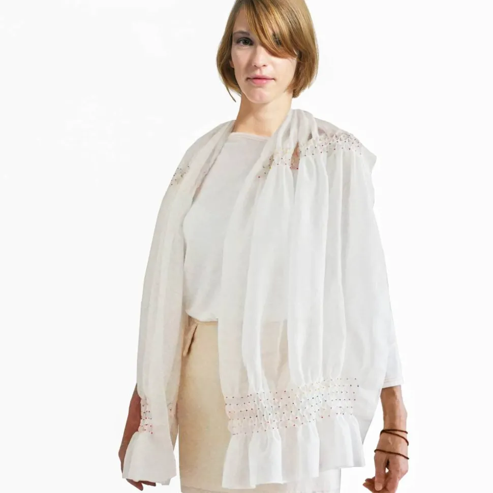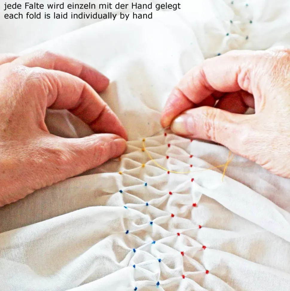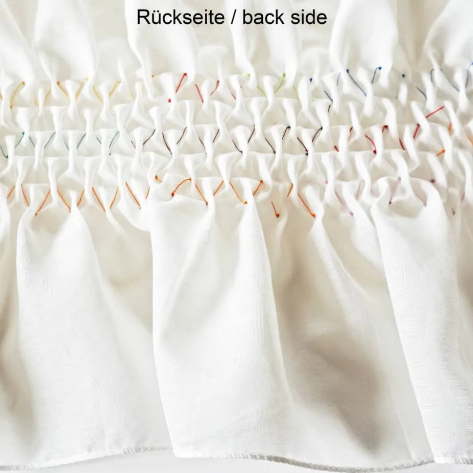 Smock mit farbigem Garn – kleine Farbpunkte. Jedes Tuch ist etwas anders – ein Unikat in Serie.