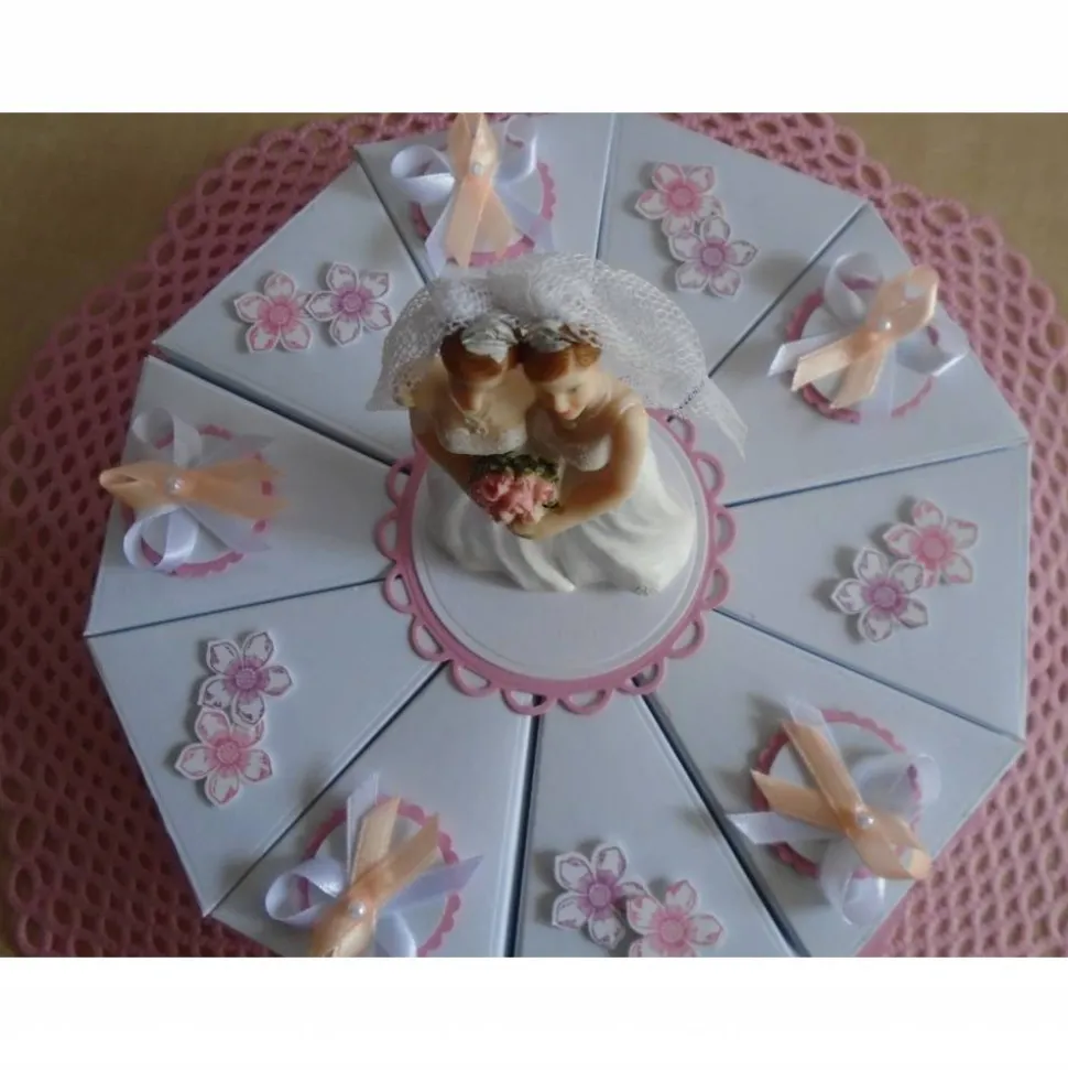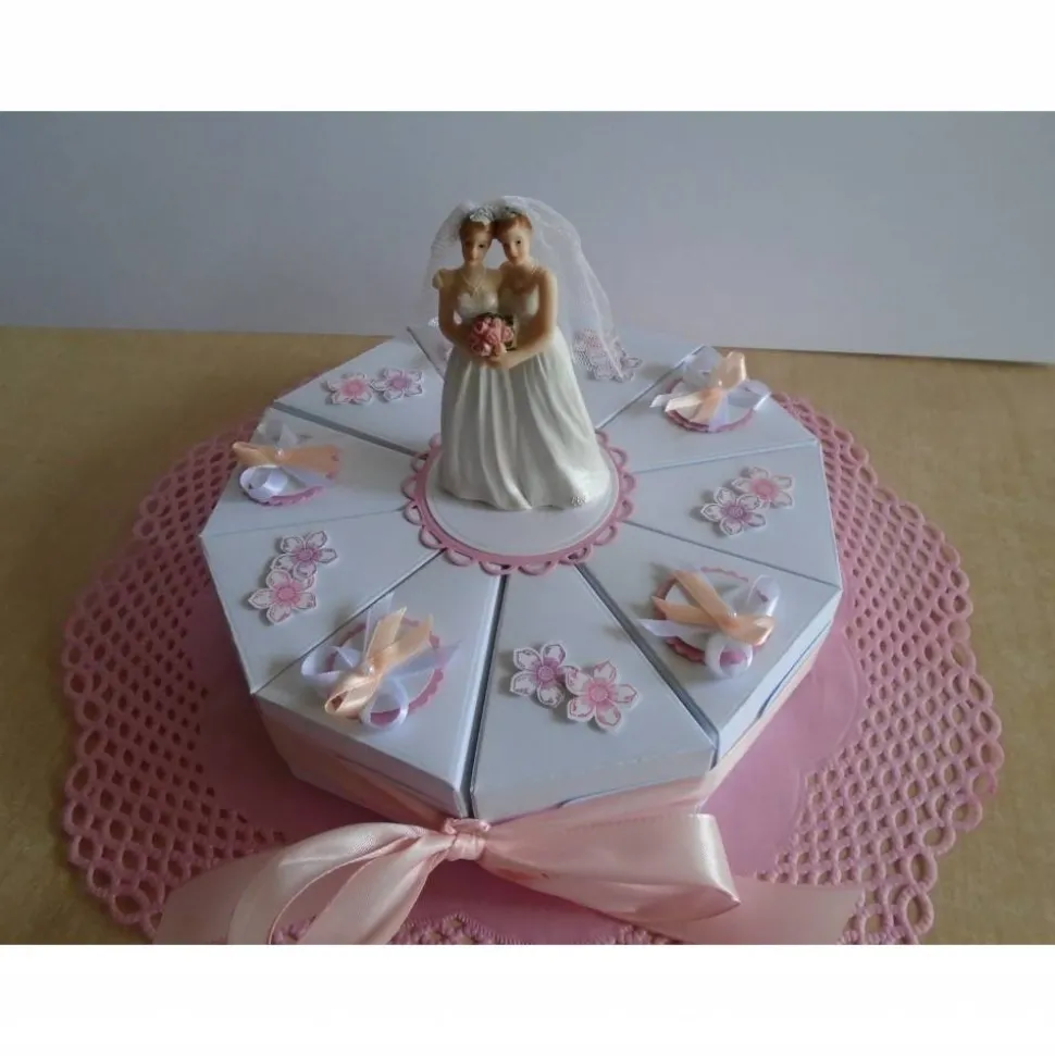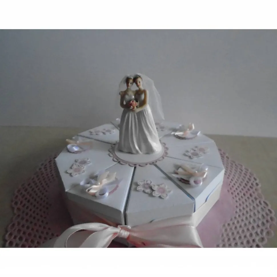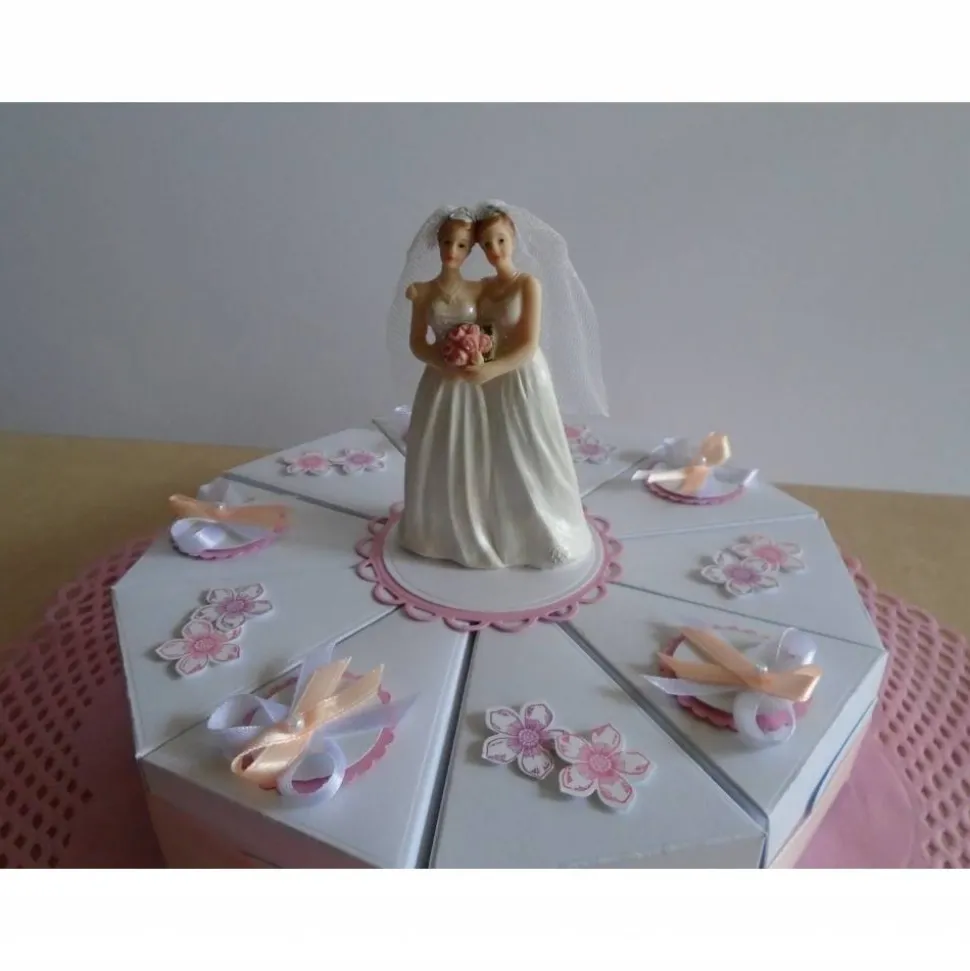 Hier seht ihr eine schöne Hochzeitstorte mit 10 stücken…diese Hochzeitstorte ist für Lesben Frauenhochzeit als Geldgeschenk,give aways Gastgeschenke geeignet..