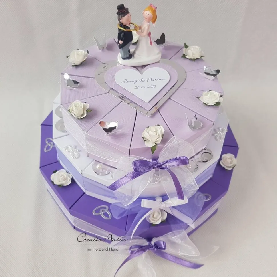 3×12 einzelne Tortenstücke, jedes einzeln nach Belieben befüllbar (z. B. mit Geld, Gutschein, Mini-Schafmilchseifen, Sprüchen, Süssigkeiten usw.)