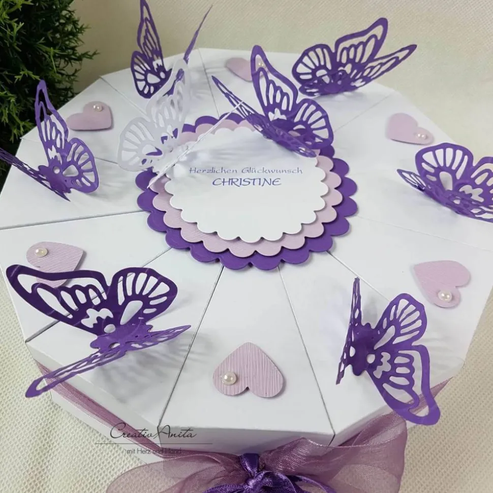 12 einzelne Tortenstücke, jedes einzeln nach Belieben befüllbar (z. B. mit Geld, Gutschein, Mini-Schafmilchseifen, Sprüchen, Süssigkeiten usw.)