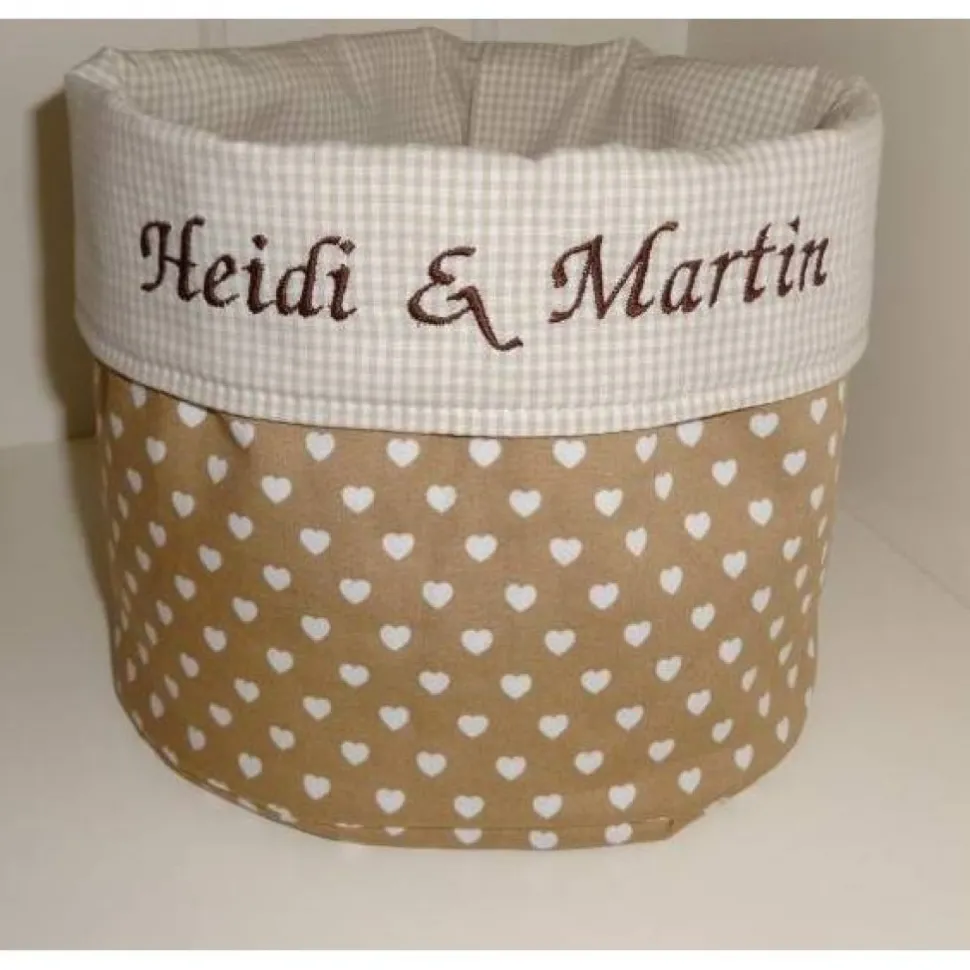 Gerne kann auch das Hochzeitsdatum oder ein Kindername aufgestickt werden (3 Euro Aufpreis).