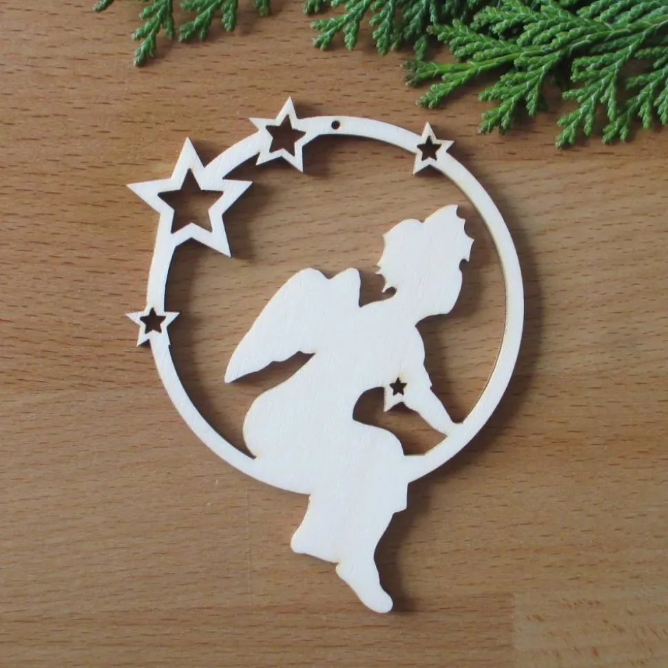 Holz-Baumhänger Engel Leon im Sternenkreis aus Holz