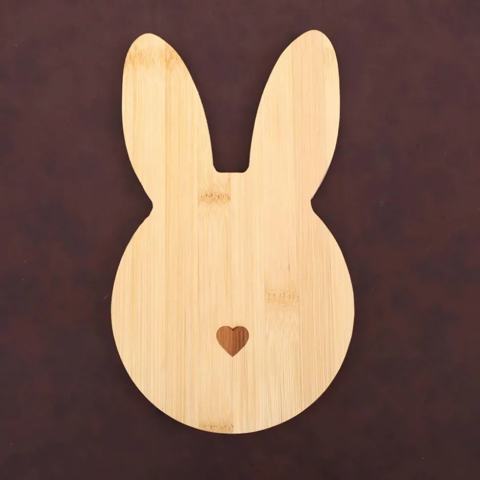 Süßes Holz Brett in Form eines Hasenkopfes aus Bambusholz gefertigt, für 1000 und eine Dekoidee.