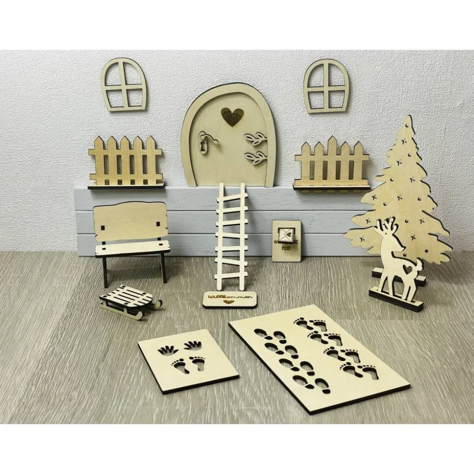Die liebevoll gefertigten Holz-Accessoires lassen sich perfekt in deiner Weihnachtsdeko integrieren und verleihen deinem Zuhause eine verspielte und märchenhafte Atmosphäre. Besonders in der Adventszeit wird die Wichteltür zu einem Highlight, das für strahlende Augen und neugierige Blicke sorgt. Platziere sie an der Wand, in einer Ecke oder auf einem Regal – die kleinen Wichtel sind bereit, in deine festliche Deko einzuziehen.