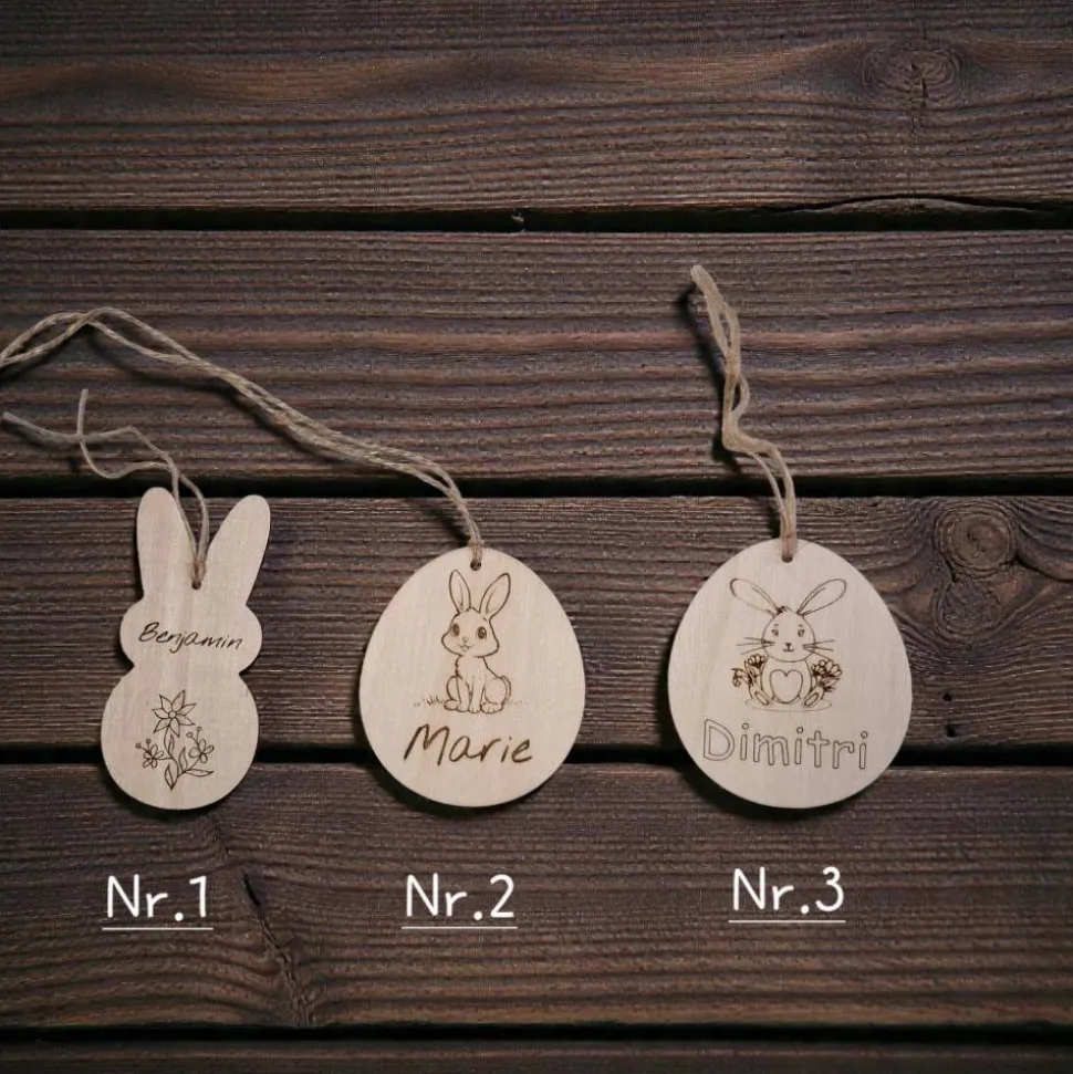 Individuell gravierte Holzanhänger in drei verschiedenen Ausführungen mit Ihrem Wunschnamen