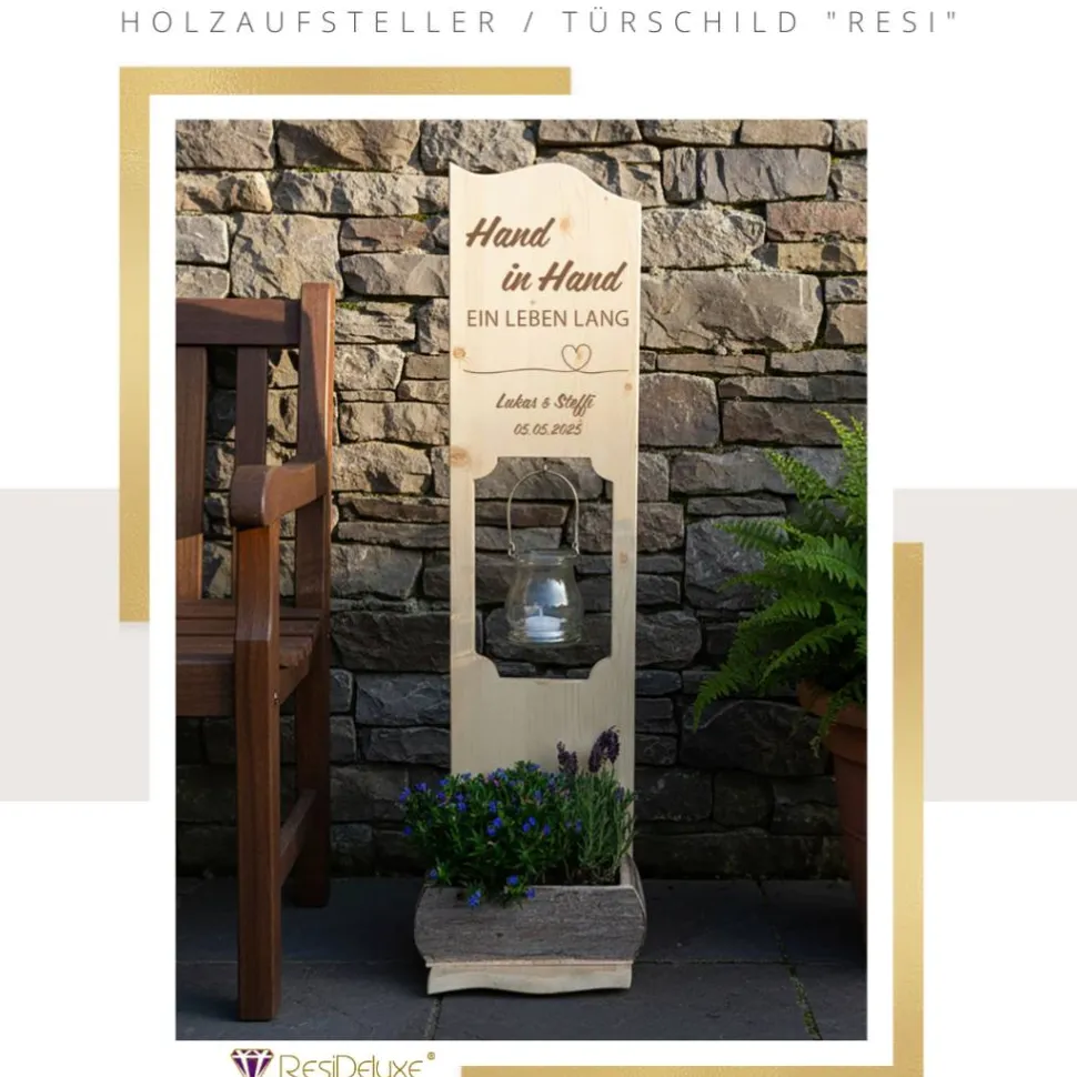Holzaufsteller „Herzlinie Hand in Hand seit Jahren“ Türschild Holzschild Hochzeitsgeschenk Hochzeit Pers