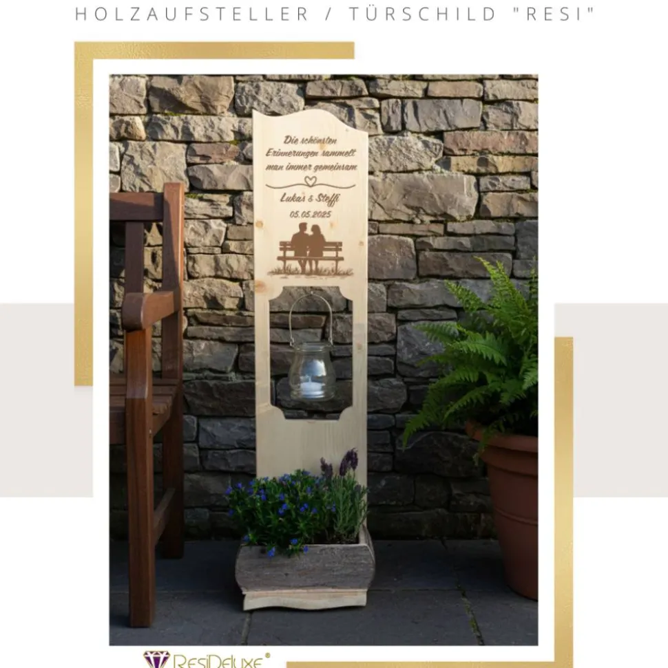 Egal ob zur Hochzeit, zur Verlobung, zum Mutter- oder Vatertag, zum Einzug, Jubiläum oder Geburtstag – Ihre Personalisierungswünsche machen unsere Holzaufsteller RESI zum passenden Geschenk für wirklich jeden Anlass.
