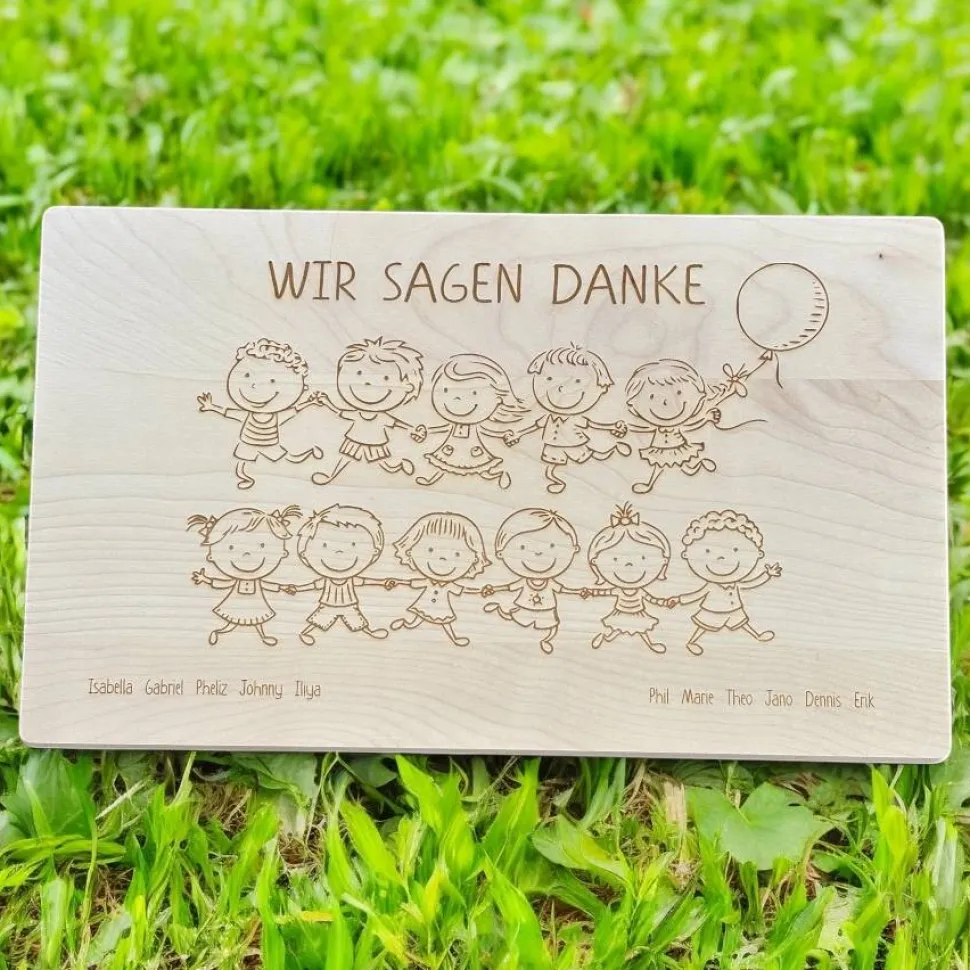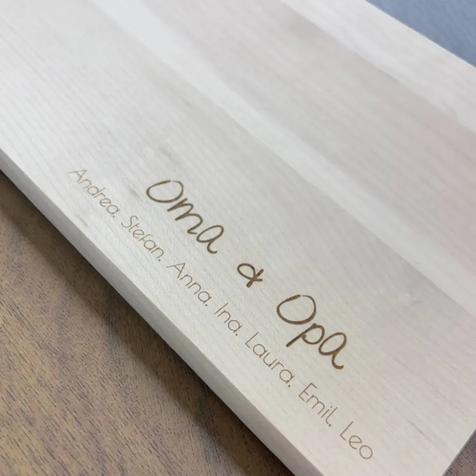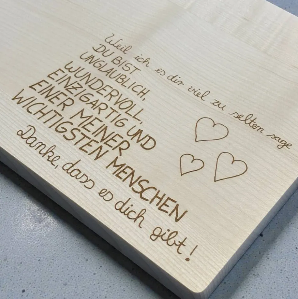 Die Gravur kann individuell nach Kundenwunsch gestaltet werden. Standardmäßig wird unten rechts ein dezenter Schriftzug gelasert.