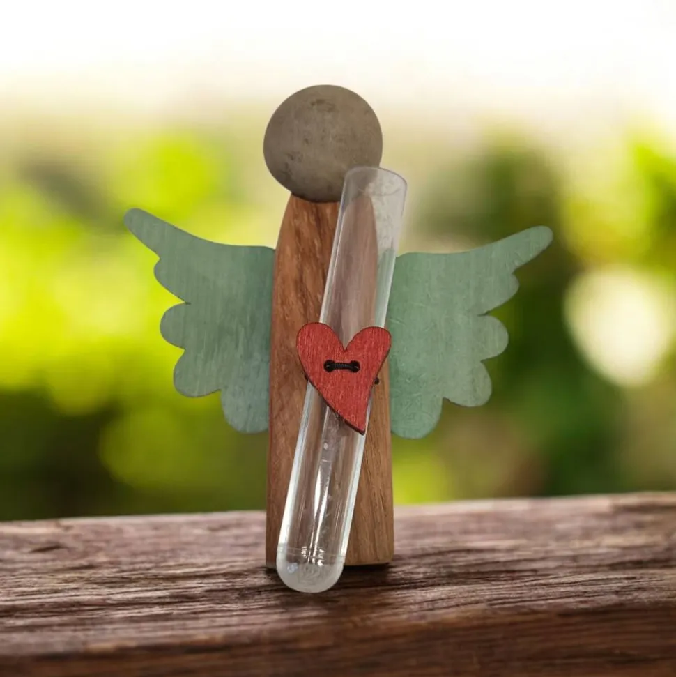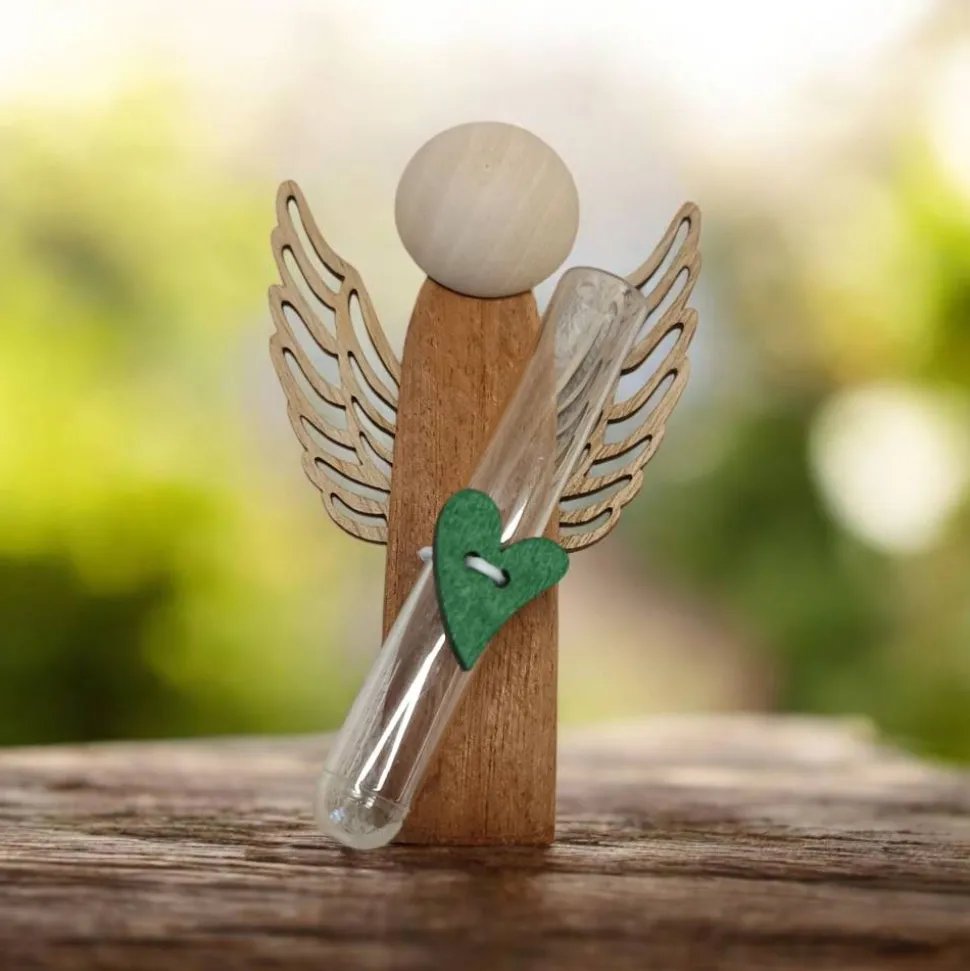 Ob als Glücksbringer, Schutzengel oder einfach als liebevolle Geste – diese kleinen Holzengel finden überall einen Platz, an dem sie Freude schenken dürfen.
