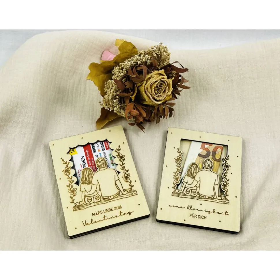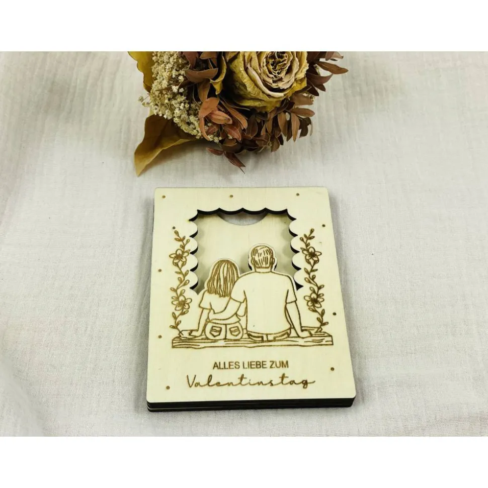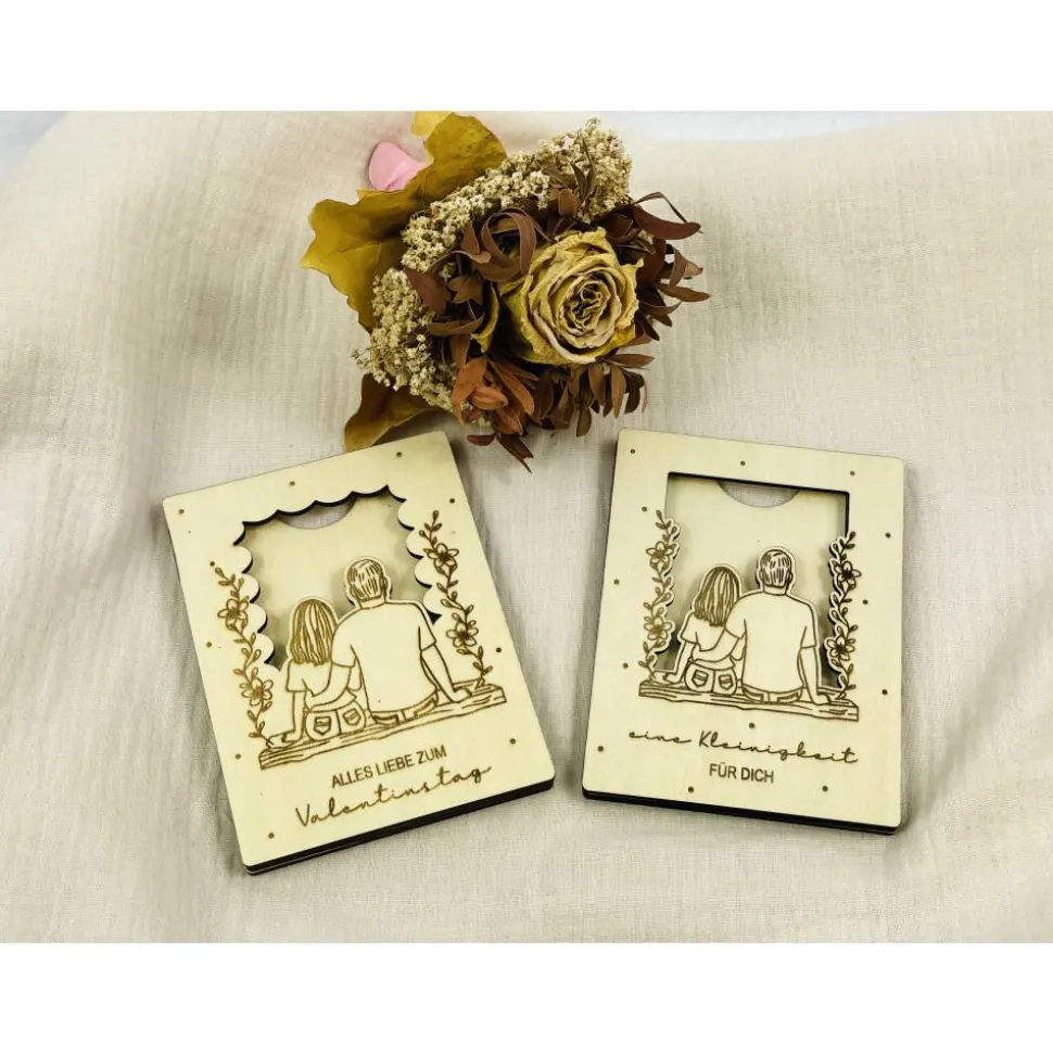 Die Karte wurde mit einem Laser aus Holz geschnitten und graviert. Du kannst aus 2 verschiedenen wählen.
