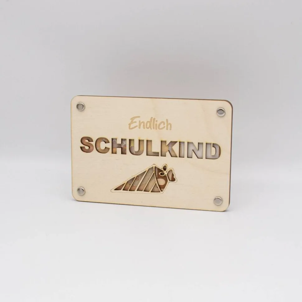 Mit der „Schulkind“ Geldgeschenk-Karte aus Birkenholz überreichen Sie nicht nur ein Geschenk, sondern auch eine bleibende Erinnerung.