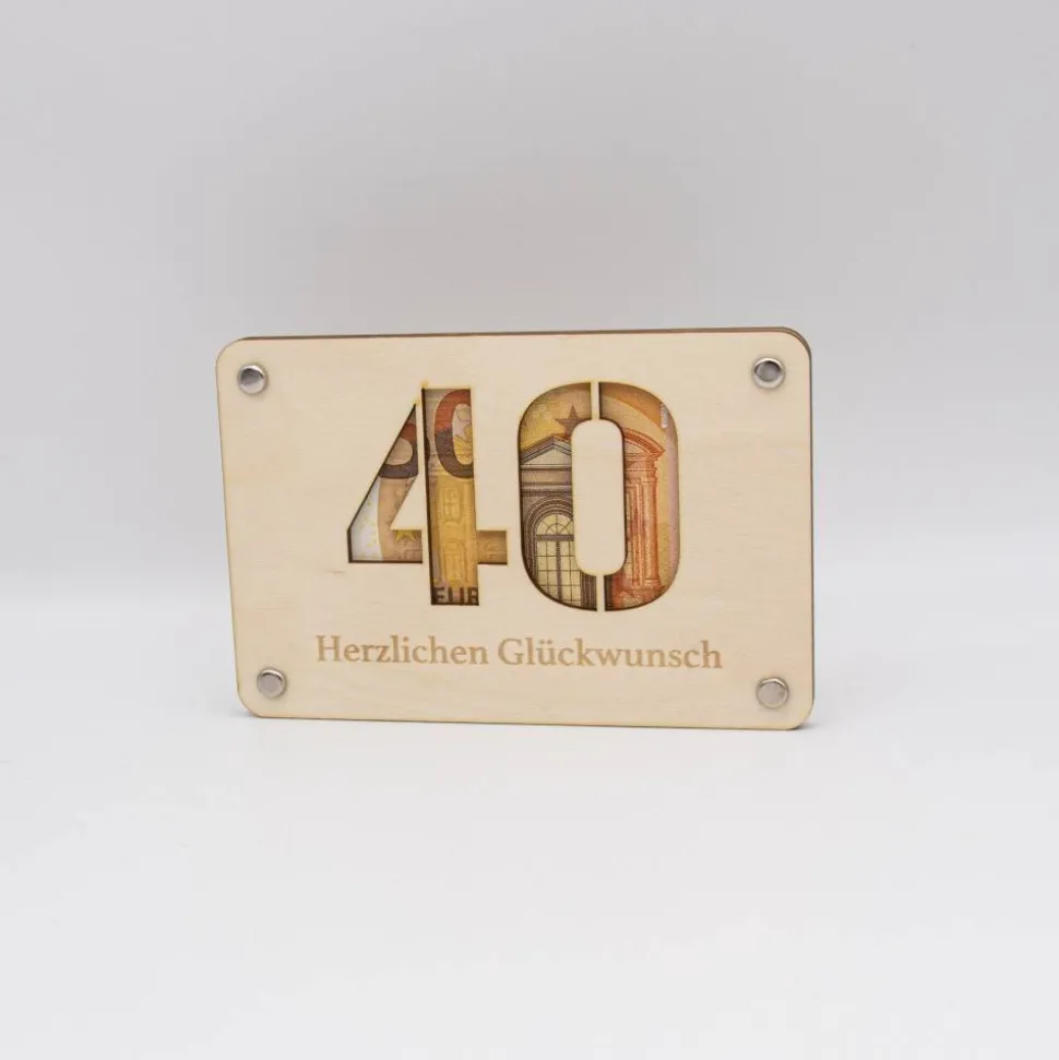 Mit der Jubiläums Geldgeschenk-Karte aus Birkenholz überreichen Sie nicht nur ein Geschenk, sondern auch eine bleibende Erinnerung.