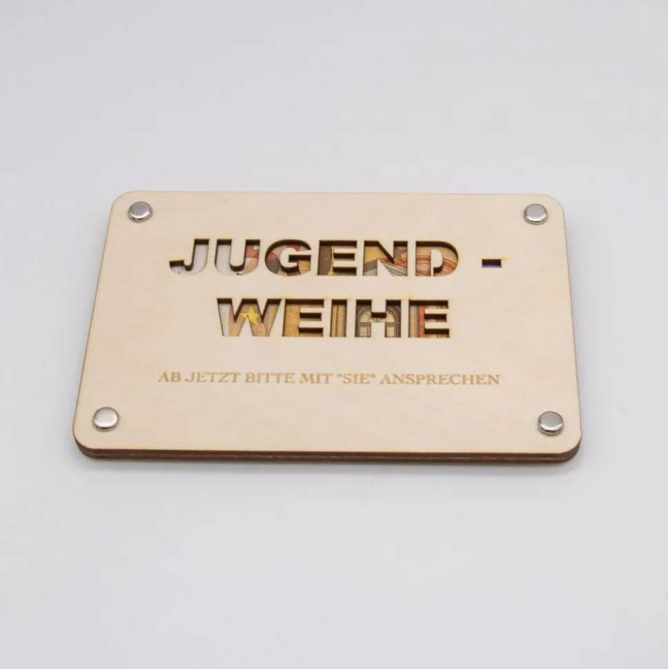 Mit der Jugendweihe Geldgeschenk-Karte aus Birkenholz überreichen Sie nicht nur ein Geschenk, sondern auch eine bleibende Erinnerung.