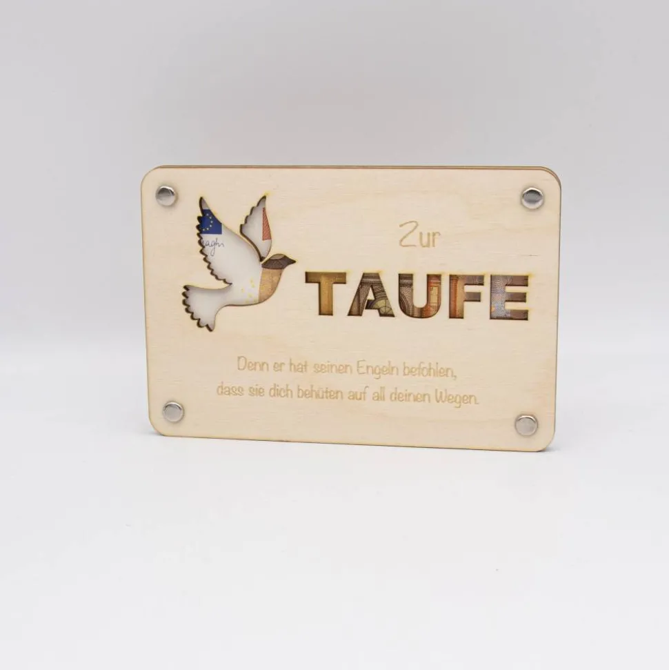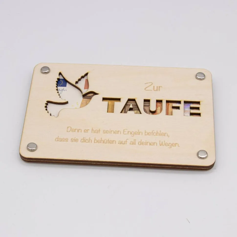 Mit der Geldgeschenk-Karte zur Taufe aus Birkenholz überreichen Sie nicht nur ein Geschenk, sondern auch eine bleibende Erinnerung.