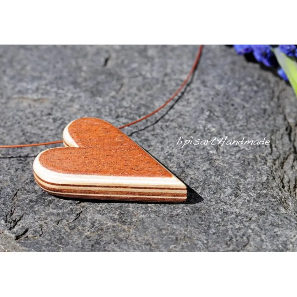 Jetzt kommt sie wieder pünktlich zum Valentinstag – eine süße Herzkette. Schichtholz aus Mahagoni- und Ahornfurnierblätter.