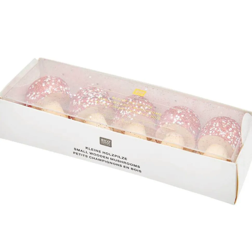 Diese kleinen, glitzernden Holzpilze bringen sofort ein märchenhaftes Funkeln in jede saisonale Dekoration. Mit ihrem irisierenden Schimmer, dem warmen Rotton und ihrer natürlichen Holzstruktur erinnern sie an einen Spaziergang durch den Herbstwald -nur mit einer extra Portion Magie. Jeder Pilz misst ca. 3,5 x 2,4 cm und ist damit ideal, um feine Akzente zu setzen, ohne zu überladen.