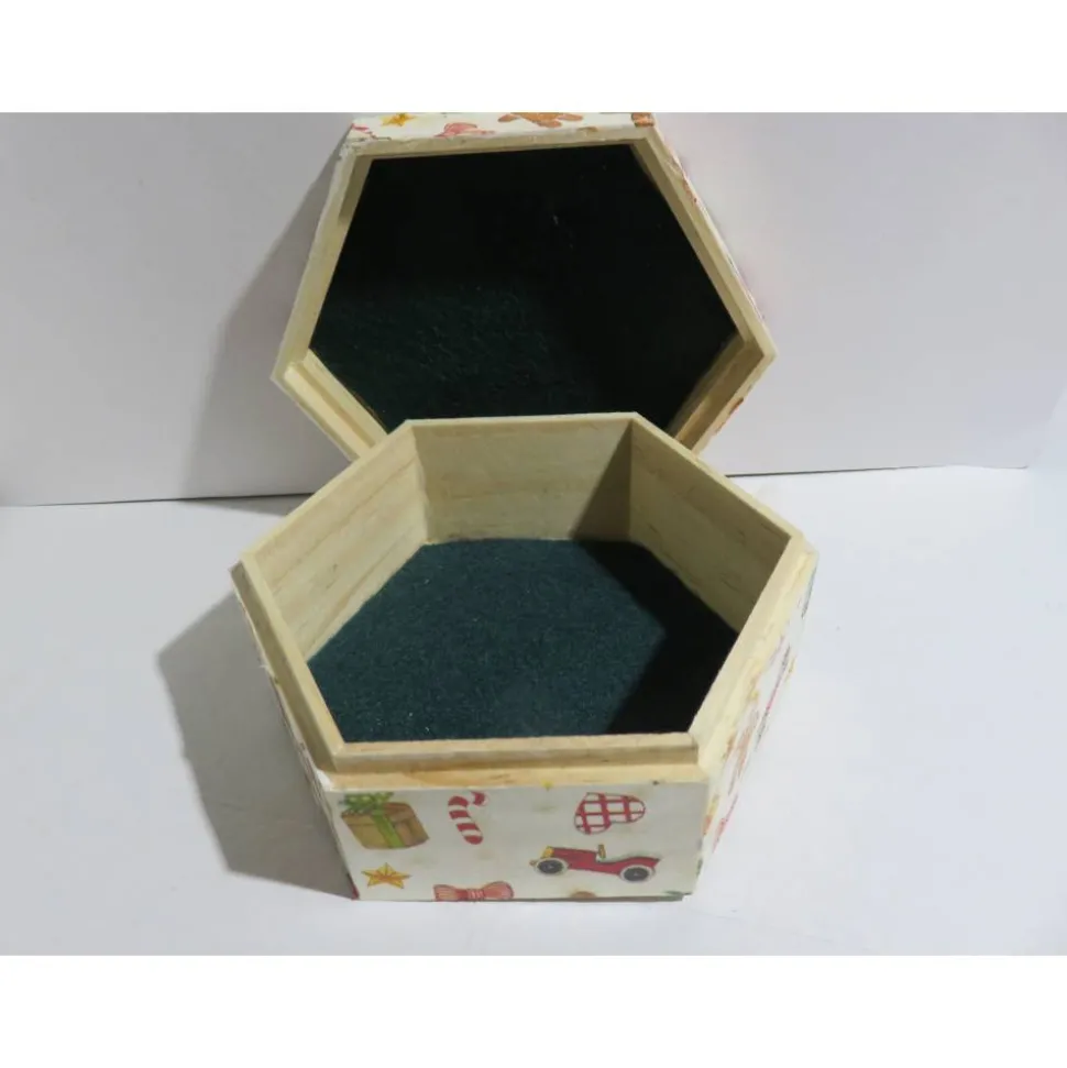 Bei dieser Holzbox verwendete ich die Motivseite einer weihnachtlichen Serviette, grünen Filz für die Innenausstattung und Serviettenkleber.