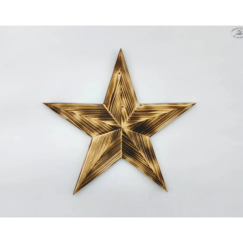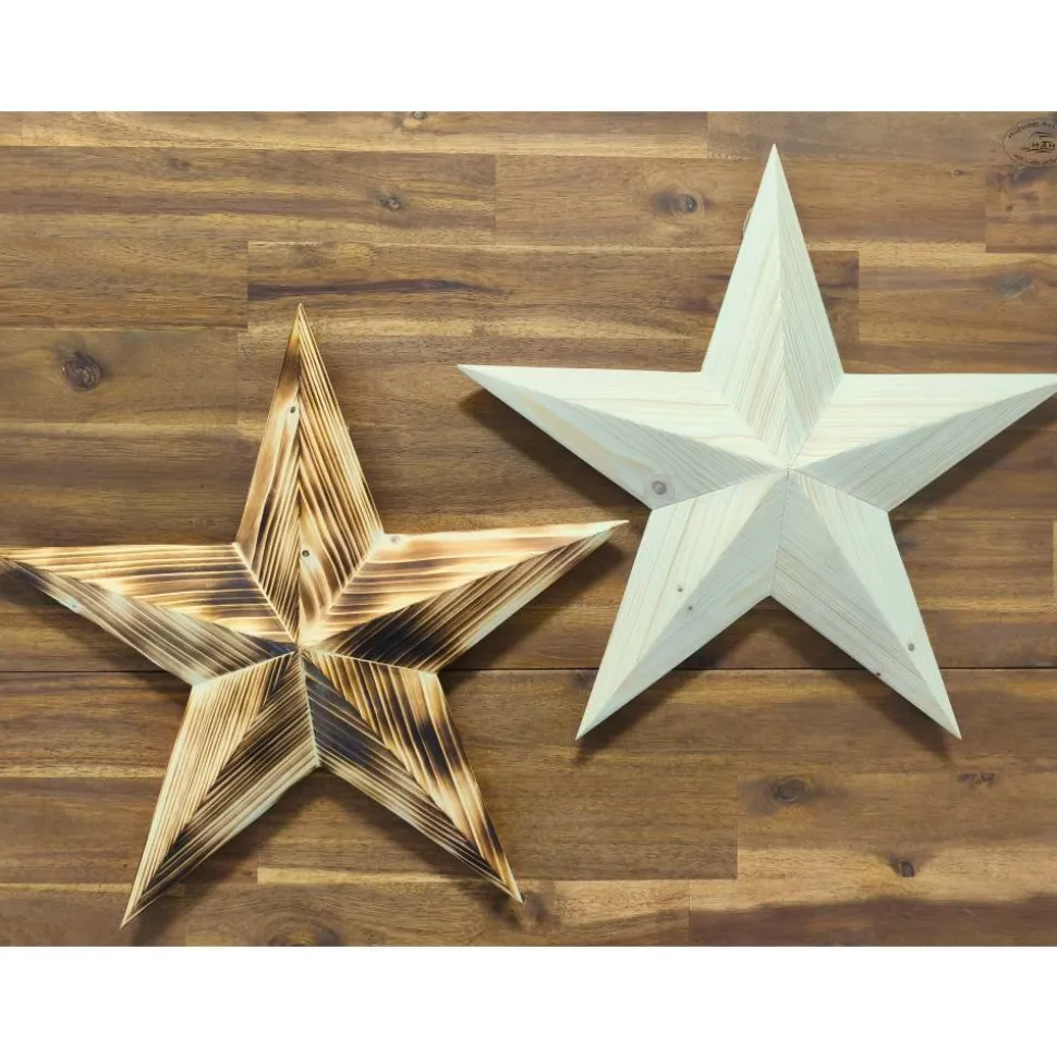 Der große Holzstern in dreidimensionaler Optik aus geflammtem Fichtenholz (ohne Dekoration) ist ein festlicher Blickfang in der Advents- und Weihnachtszeit.