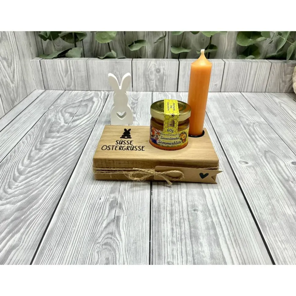 – Holzblock, massiv Eiche, graviert mit einem Ostergruß