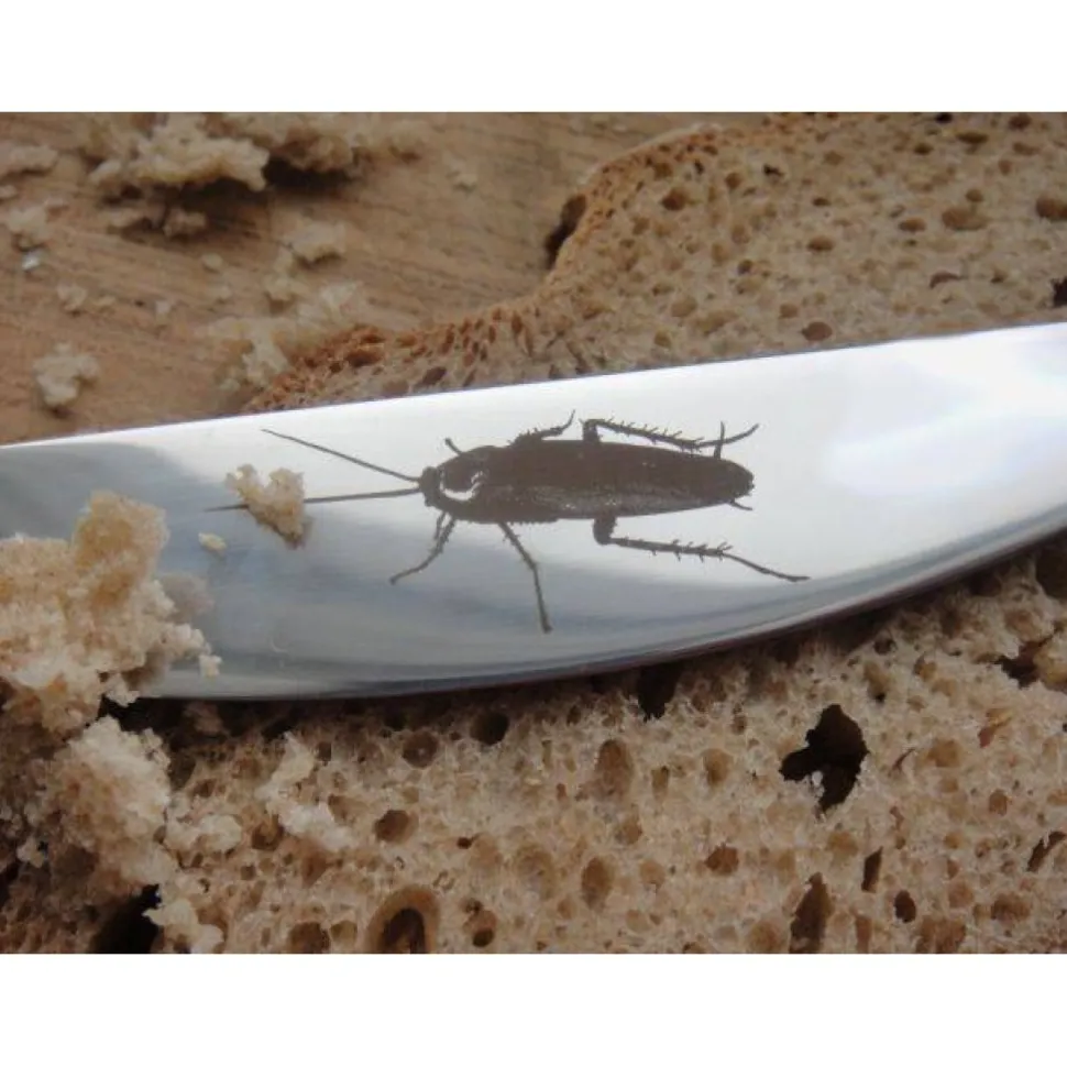 Messer, Gabel, Löffel, mit jeweils einem NATURGETREU GEZEICHNETEM Insekt eingelasert: