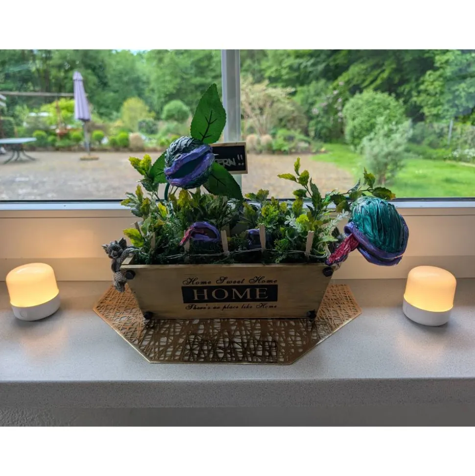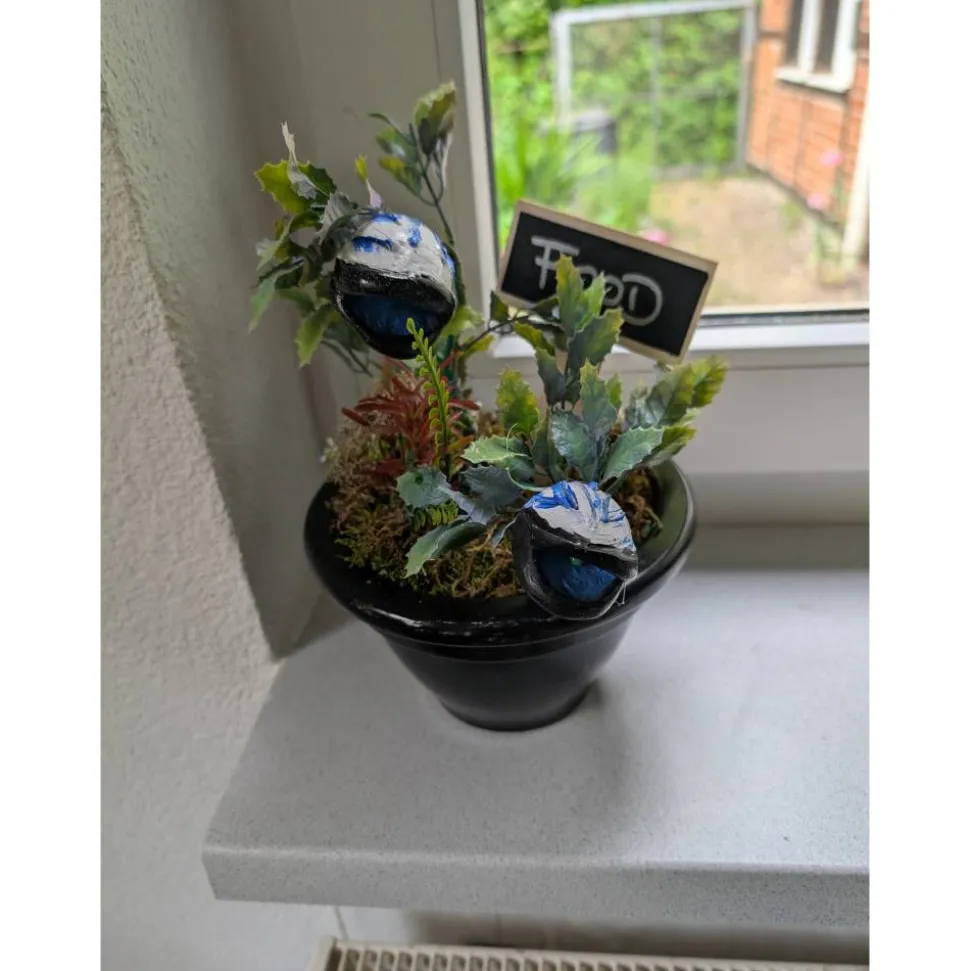 Farbgestaltung: Die Pflanzenköpfe, Zungen und Details fertige ich in Ihren Wunschfarben an (z. B. klassisches Blutrot, giftiges Lila oder schimmerndes Schwarz).
