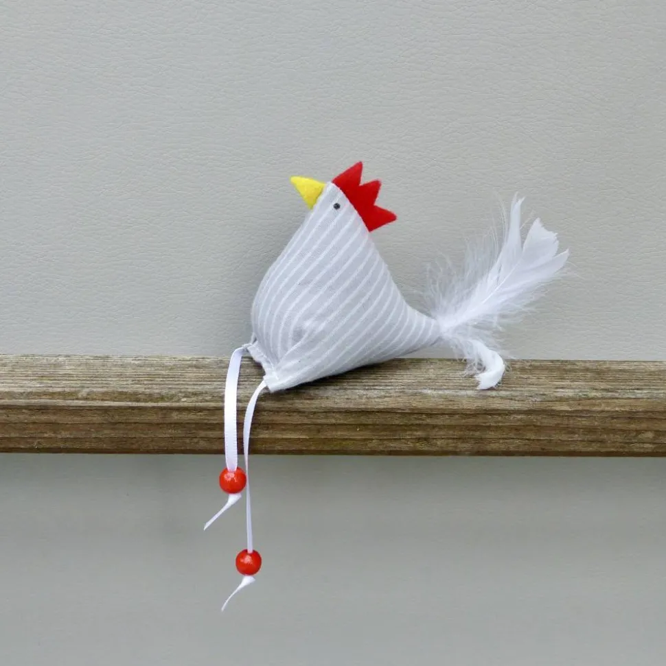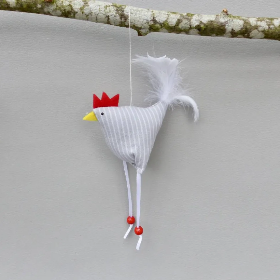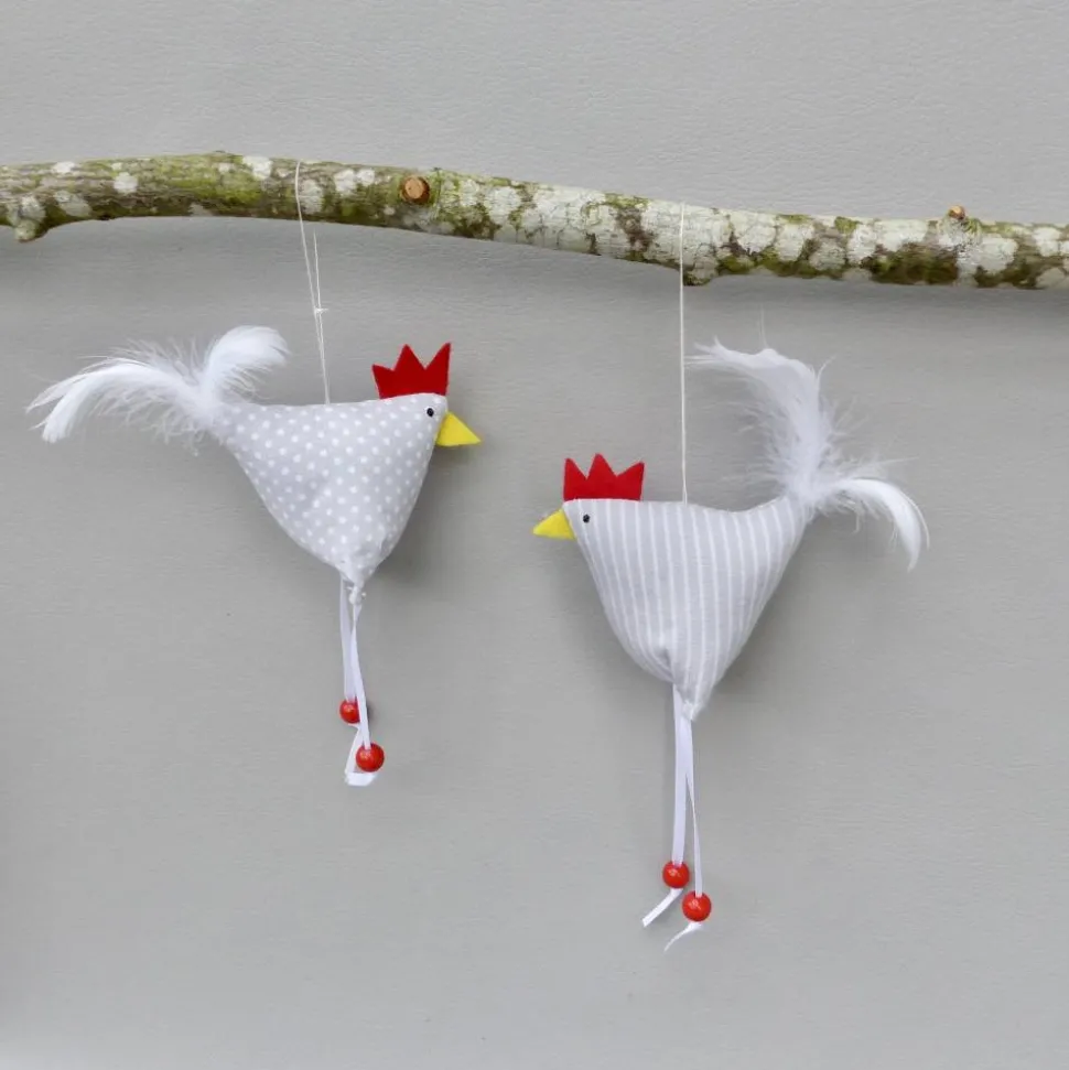 Die Stoffhühner sind gesund (können sitzen und am angebrachten Faden sogar fliegen)
