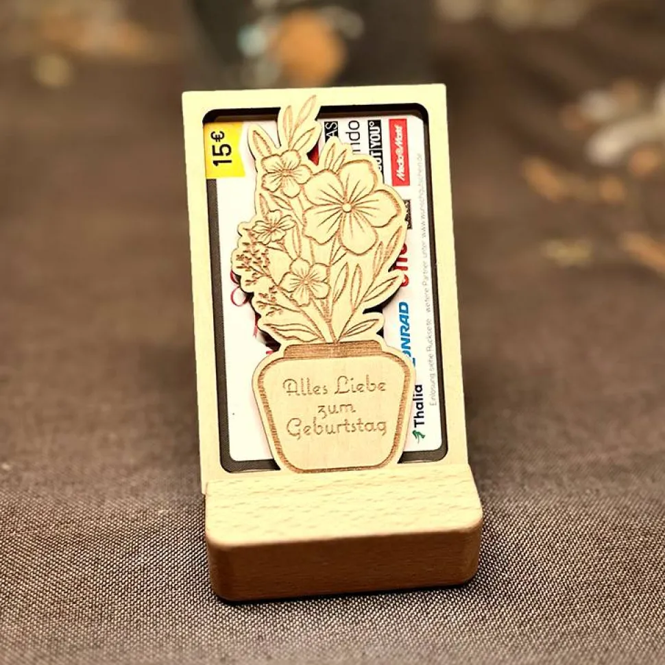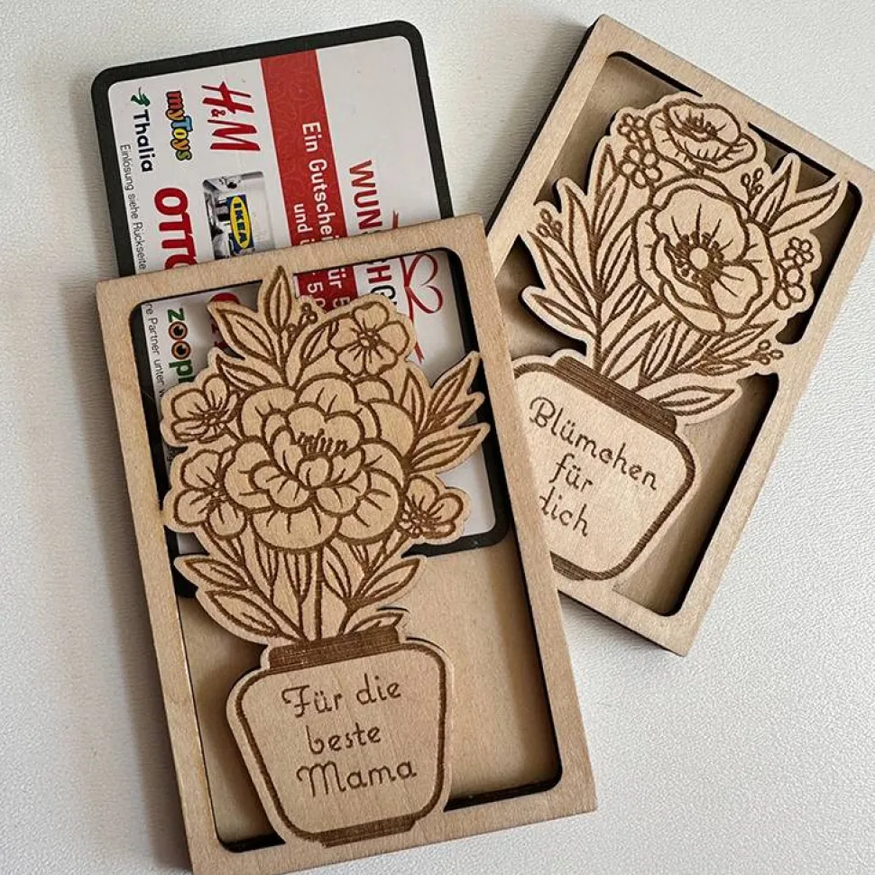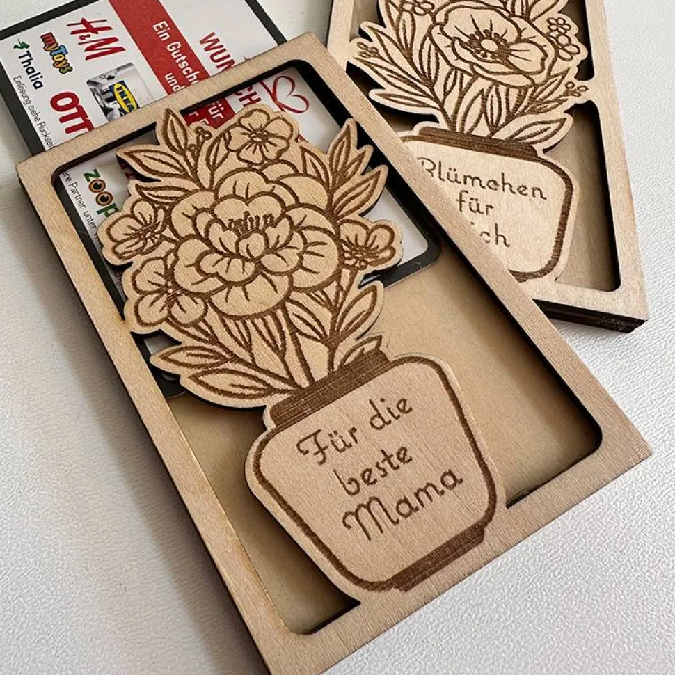 Du suchst eine schöne Möglichkeit eine Gutscheinkarte zu überreichen? Mit der stabilen Hülle aus Holz kommt deine Gutscheinkarte besonders hübsch verpackt an.