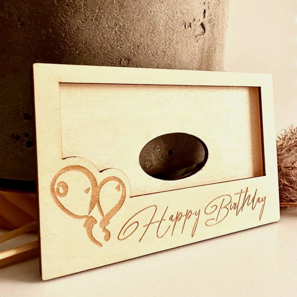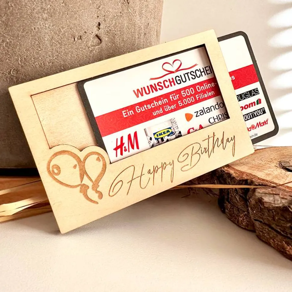 Mit der stabilen Hülle aus Holz kommt deine Gutscheinkarte besonders hübsch verpackt an.