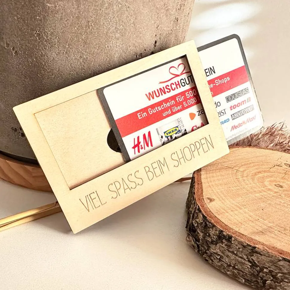 Mit der stabilen Hülle aus Holz kommt deine Gutscheinkarte besonders hübsch verpackt an.