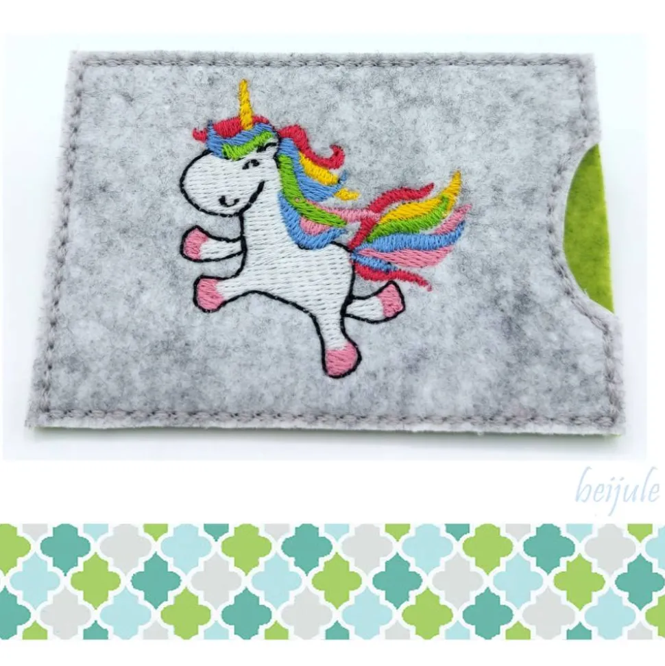 ♥Farbe Filz: vorne grau meliert, hinten grün, Stickerei: bunt, weiss♥