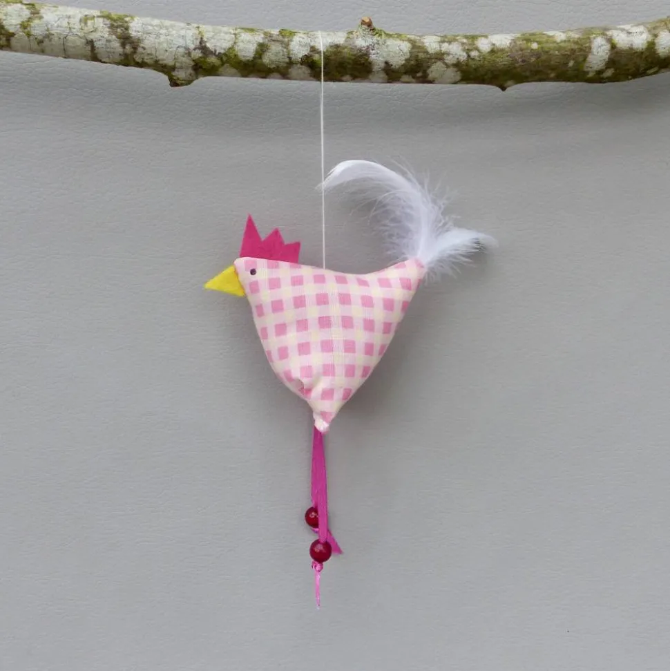 Diese handgefertigten Stoffhühner sind für die jahreszeitliche Dekoration zu Ostern gedacht.