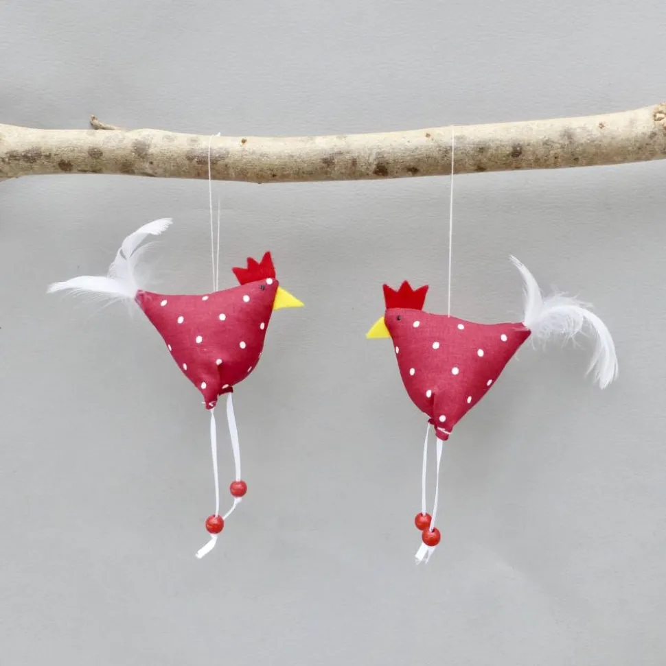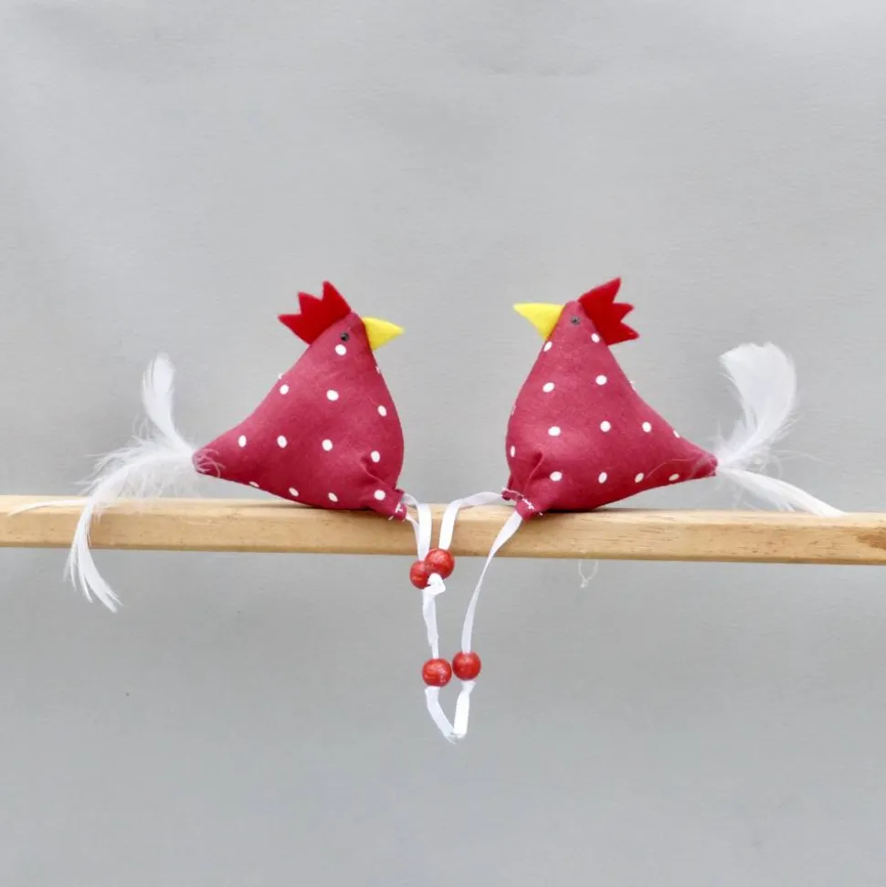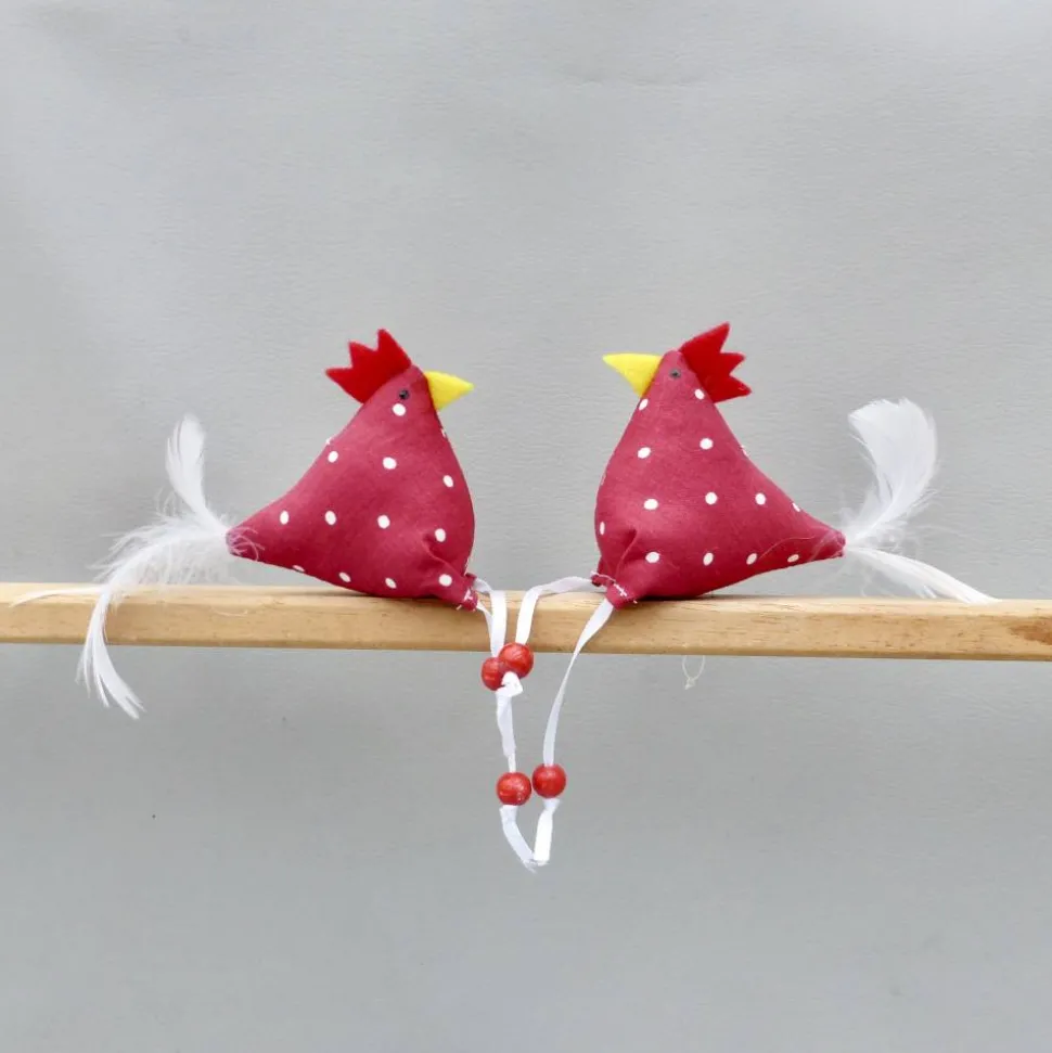 Die Stoffhühner sind gesund (können sitzen und am angebrachten Faden sogar fliegen)