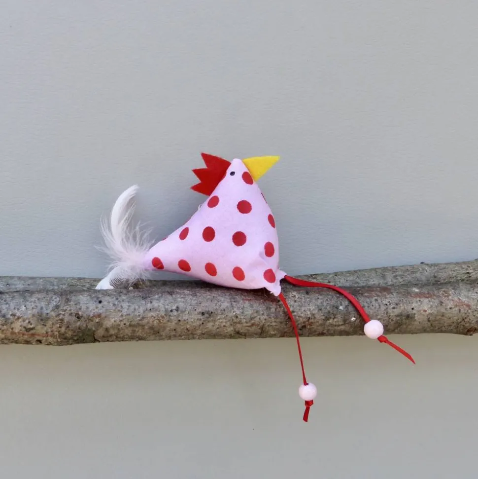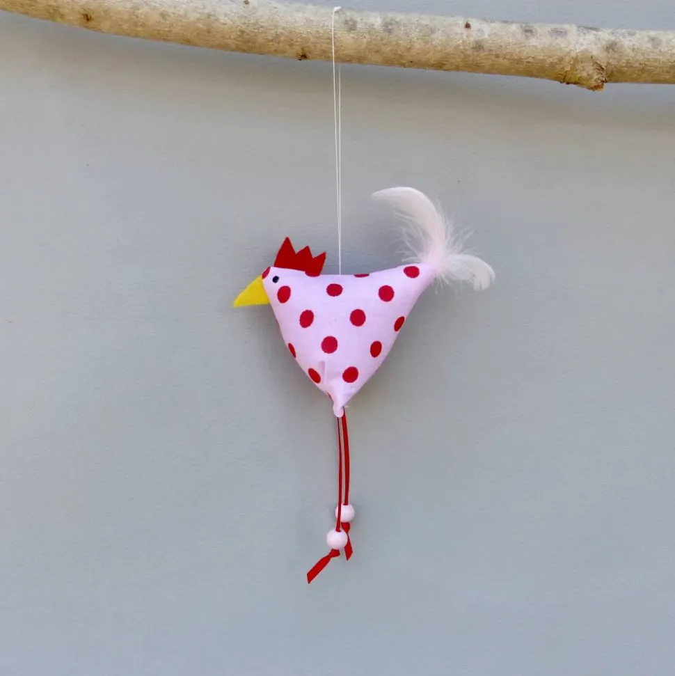 Die Stoffhühner sind gesund (können sitzen und am angebrachten Faden sogar fliegen)