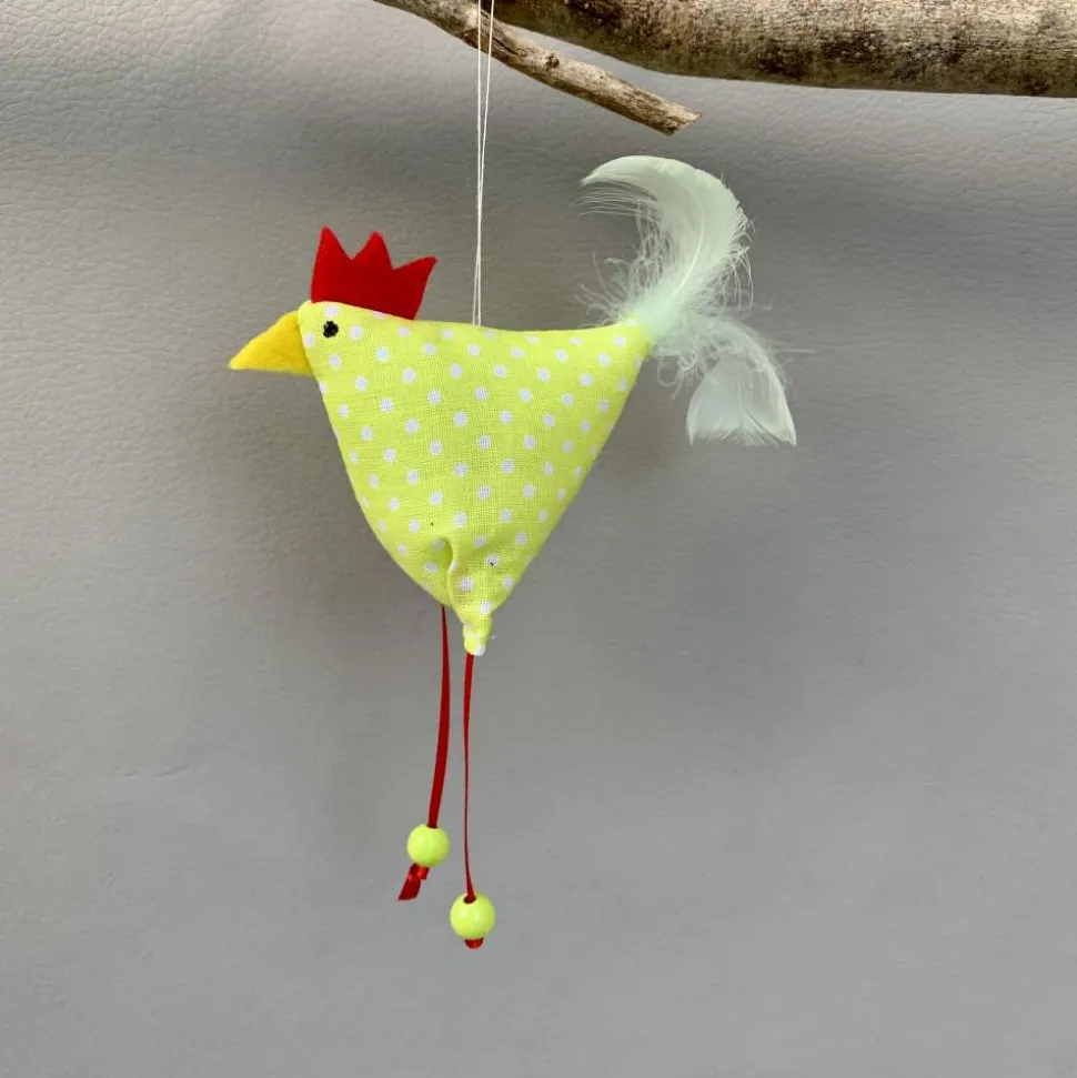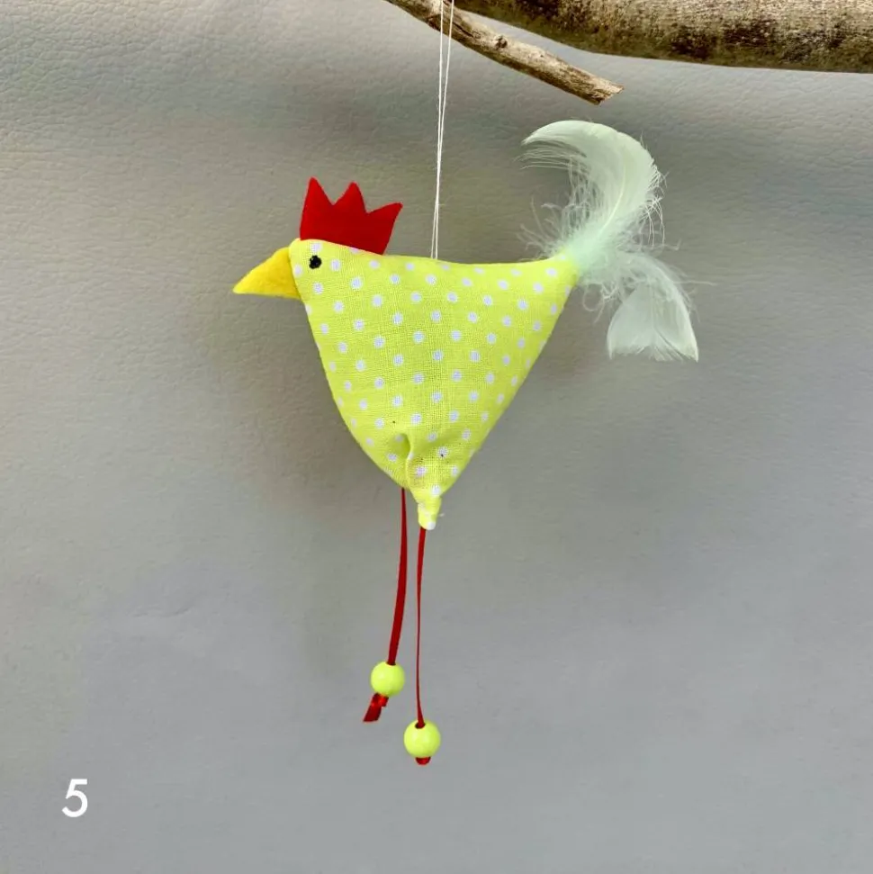 Diese handgefertigten Stoffhühner sind für die jahreszeitliche Dekoration zu Ostern gedacht.