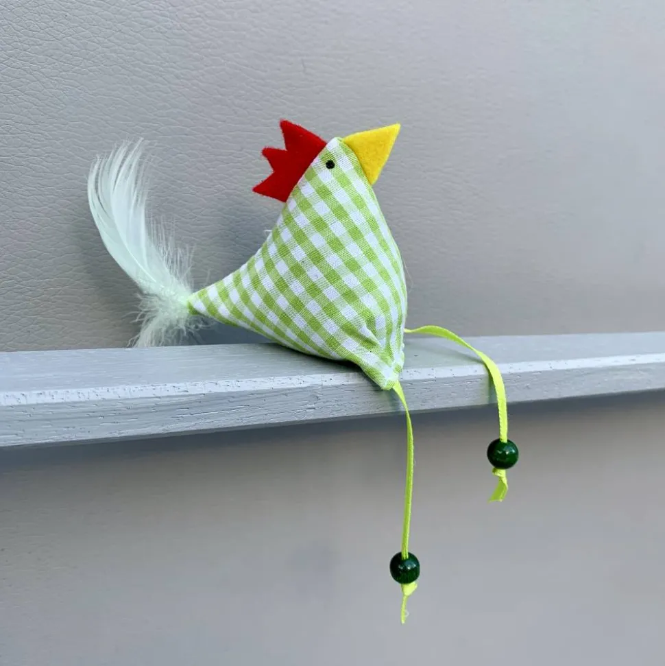 Die Stoffhühner sind gesund (können sitzen und am angebrachten Faden sogar fliegen)