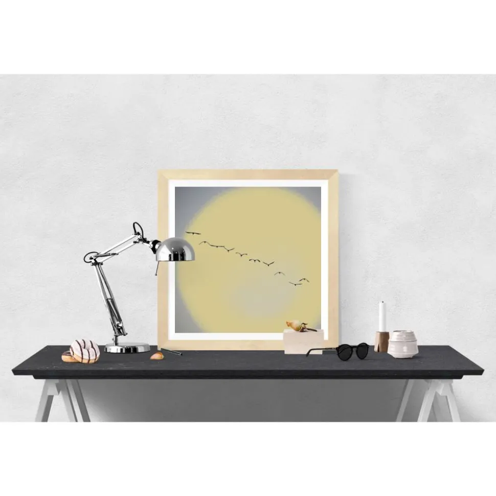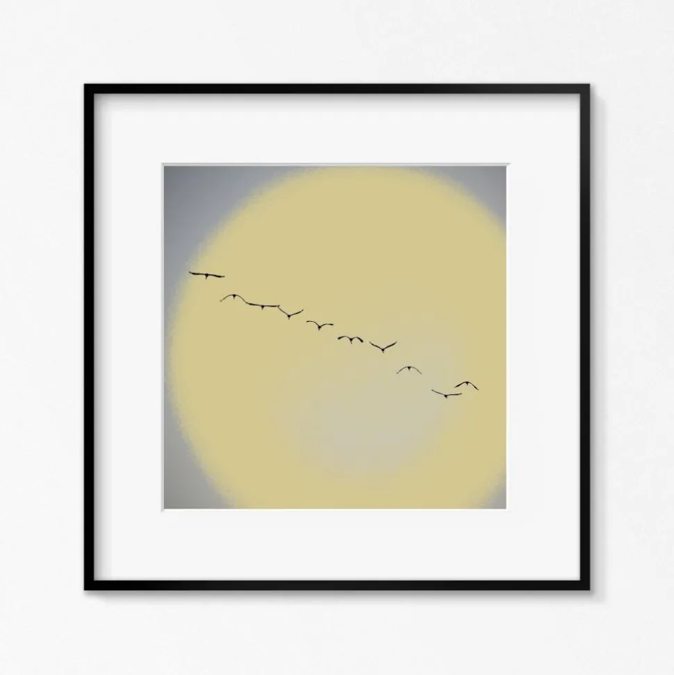 Hier vereinen sich Fotografie und Illustration. Kraniche, auf dem Weg in den Süden. Das weckt Fernweh. Magst du die verträumte und beruhigende Szene mit den dezenten Farben so wie ich?