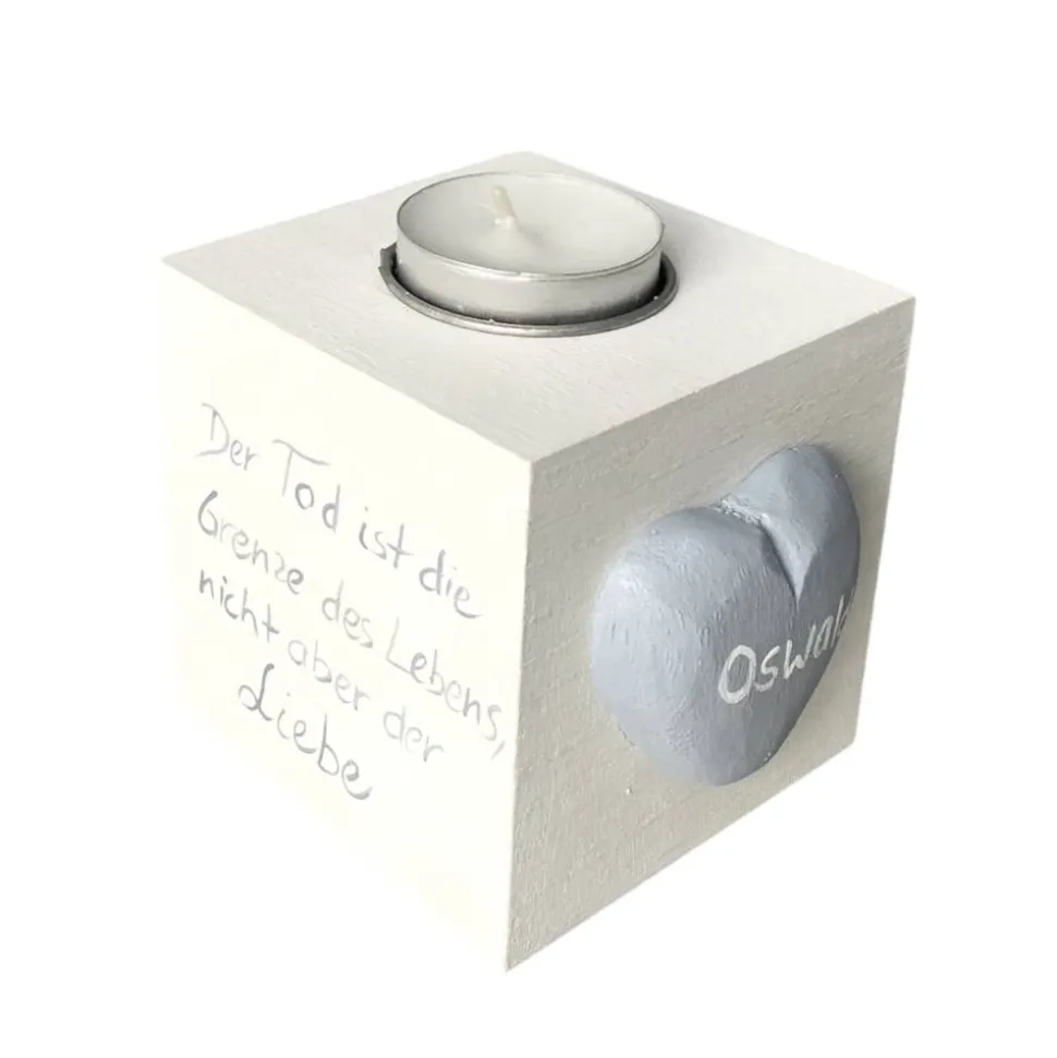 Verschenke bleibende Erinnerungen mit einem individuell bemalten Kerzenwürfel! Dieser hochwertige Holzwürfel mit Metalleinsatz eignet sich perfekt als Teelichthalter und wird nach deinem Kauf liebevoll für dich bemalt. Ob als Trauerlicht, zur Taufe oder als besonderes Geschenk zur Erinnerung – der Kerzenwürfel ist vielseitig einsetzbar.